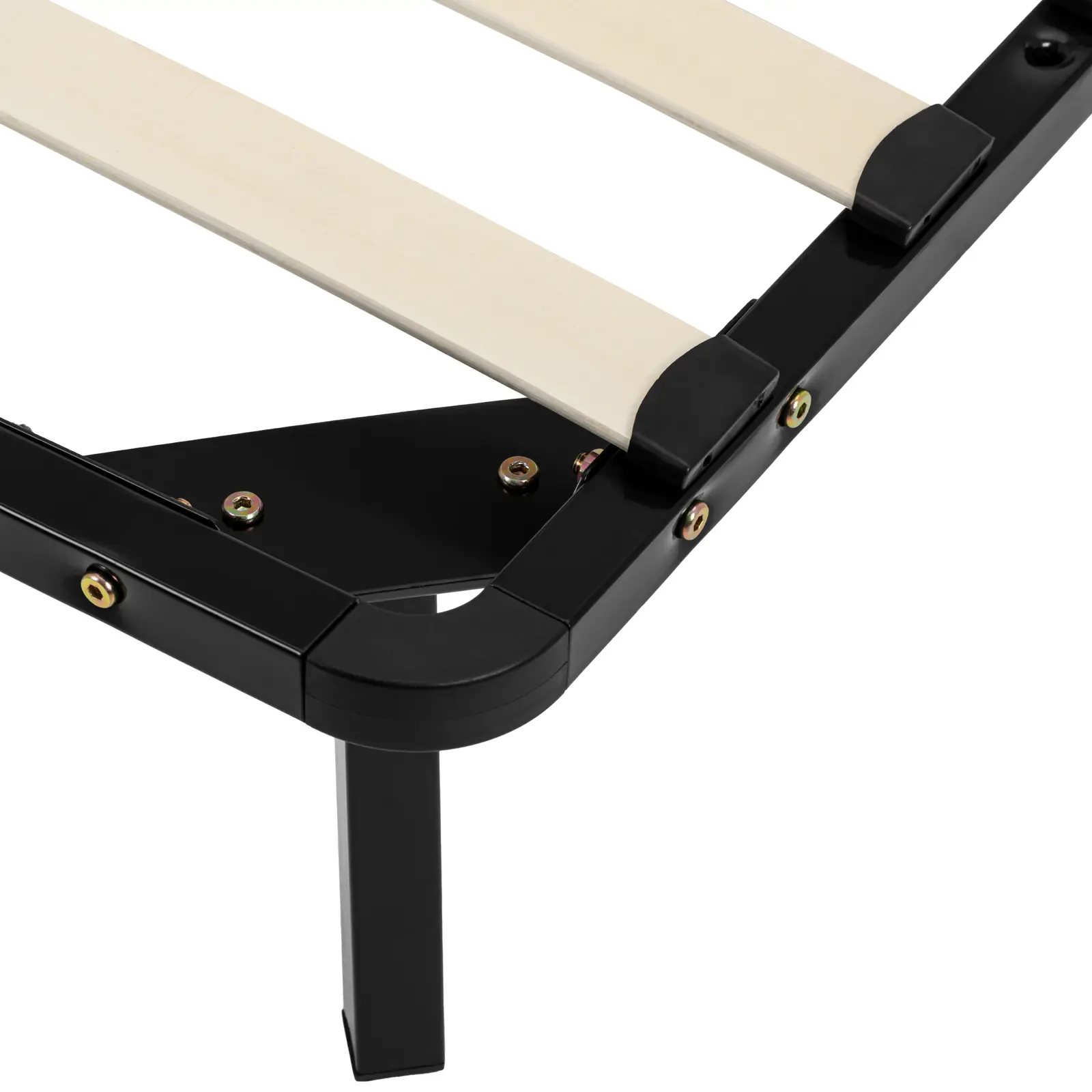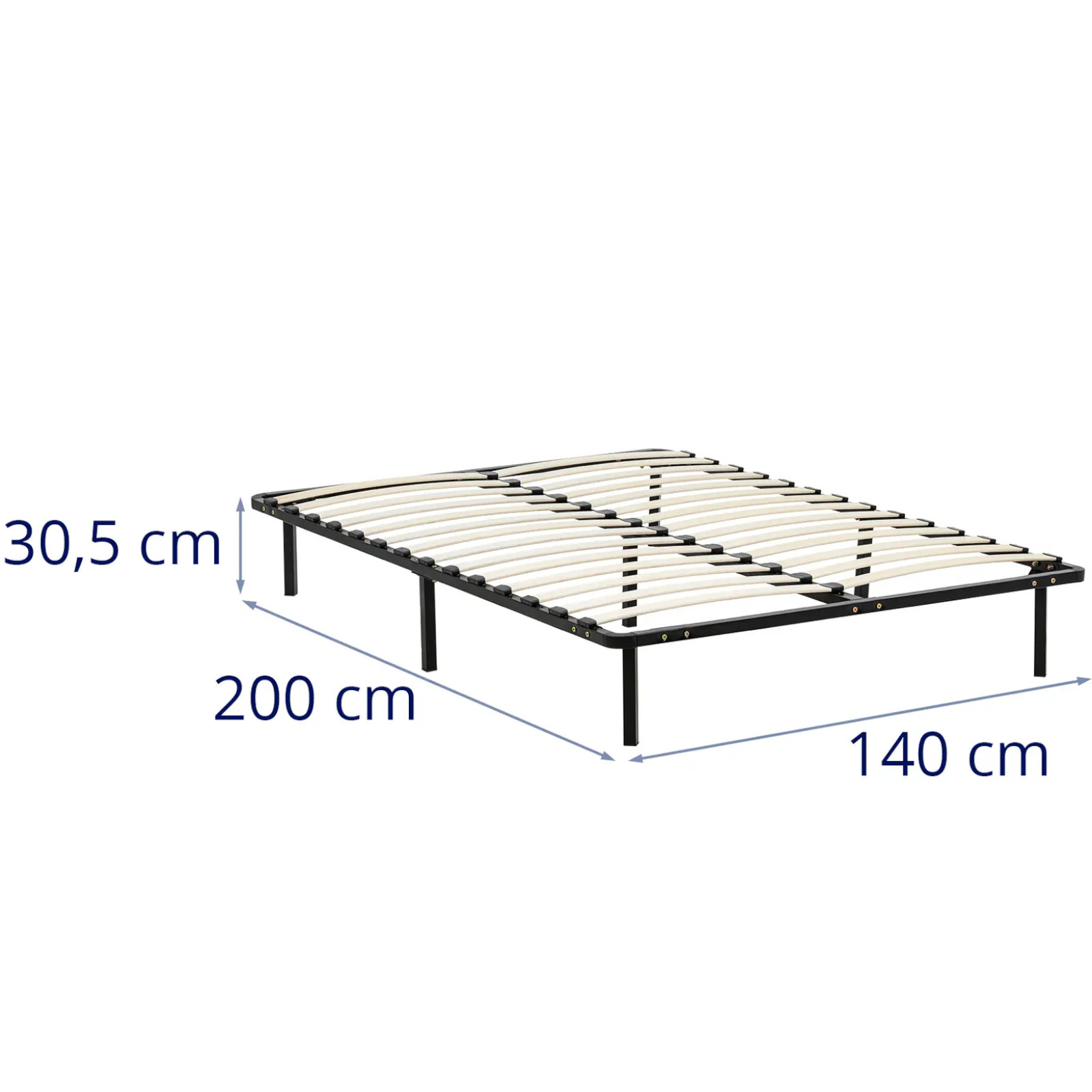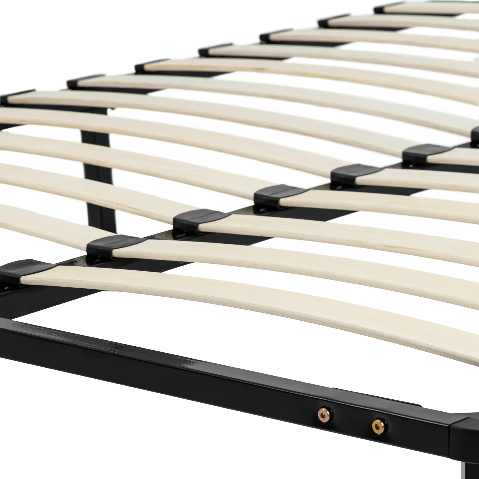 Stelaż do łóżka z listwami marki Uniprodo zapewnia wygodne miejsce do spania. Sprawdzi się w domach prywatnych, placówkach opieki zdrowotnej, domach opieki, pensjonatach czy w domach wakacyjnych. Otwarta konstrukcja umożliwia zyskanie wystarczająco dużo miejsca na wszystkie rodzaje materacy, niezależnie od tego, czy są sprężynowe, czy piankowe. Ramę łóżka można szybko rozłożyć i postawić w sypialni. Uniesiona nad podłogą konstrukcja stoi na siedmiu solidnych nogach, umożliwiając tym samym optymalną cyrkulację powietrza, wentylację materaca i odprowadzenie wilgoci. Minimalizuje więc ryzyko powstawania nieprzyjemnych zapachów i pleśni. Solidna stalowa rama znosi obciążenie do 400 kg.