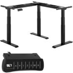 Stelaż biurka narożnego marki Fromm & Starck z regulacją wysokości umożliwia zarówno pracę w pozycji siedzącej, jak i stojącej. Stelaż do biurka można regulować na wysokość 580-1230 mm oraz zmieniać szerokość powierzchni roboczych od 1100 do 1900 mm (prawa) lub od 900 do 1500 cm (lewa). Blaty ustawione zostały pod kątem 90°. Trzy kolumny podnoszące są regulowane cicho, delikatnie i szybko (38 mm/s) za pomocą 3 silników o mocy 450 W. Sterowanie odbywa się intuicyjnie. Dzięki funkcji pamięci można zapisać do 3 ustawień wysokości i w razie potrzeby szybko je przywołać. Praktyczna rama została wyposażona też w timer, który przypomina o przerwie lub konieczności zmiany pozycji. Konstrukcja wykonana ze stali z elementami wykonanymi z wysokiej jakości tworzywa sztucznego. Gumowe nóżki zapobiegają ślizganiu się i chronią podłogę przed zarysowaniami.