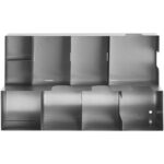 Stojak na kubki, pokrywki i inne akcesoria marki Royal Catering posiada 9 przegródek mieszczących cukier, mleko, serwetki, patyczki do mieszania itp. Ogranizer sprawdzi się na stoiskach z przekąskami, w salach konferencyjnych, poczekalniach czy w biurze. Stojak ma otwartą i kompaktową konstrukcję. 3 przegródki pozwalają przechować wiele papierowych kubków. Pokrywki mogą mieć średnicę do 100 mm. Przedmiot wykonano ze stali nierdzewnej, jest trwały i łatwy w czyszczeniu.