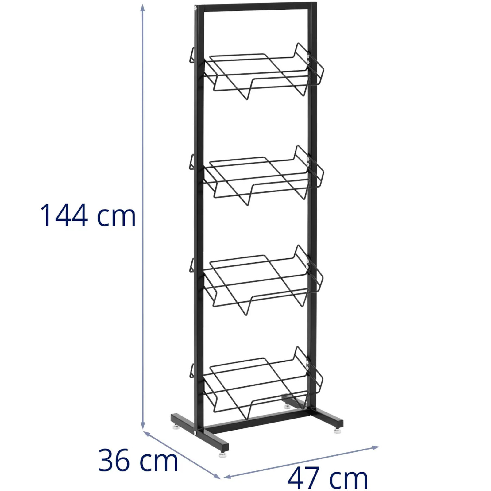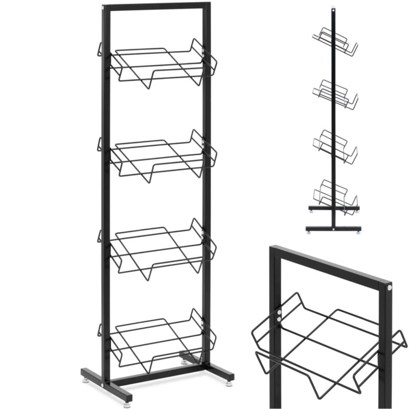 Stojak marki Royal Catering sprawdzi się do prezentowania skrzynek z warzywami czy owocami. Jest to solidny regał wykonany ze stali malowanej proszkowo. Oferuje 4 pochylane miejsca na drewniane skrzynki o wymiarach 40 x 30 x 12 cm i jest gotowy do natychmiastowego użytku. Idealnie sprawdzi się więc do sprzedaży wewnątrz i na zewnątrz. Dzięki pochylonym uchwytom cały asortyment jest dobrze widoczny i stoi stabilnie. Ładny design wykonany został z metalu pomalowanego na czarno, co sprawia, że regał przyciąga wzrok wszędzie. Stalową konstrukcję szybko i wygodnie zmontować. Stojak został zaprojektowany do profesjonalnego i regularnego użytku i imponuje długą żywotnością.