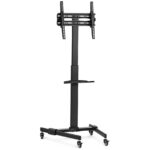 Stojak na telewizor marki Fromm&Starck pozwala zamocować TV na odpowiedniej wysokości bez konieczności montażu do ściany. Stojak na telewizor można swobodnie przestawiać, co znajdzie zastosowanie w szkołach, biurach, a także podczas szkoleń lub prezentacji. Wygodna regulacja stojaka na telewizor pozwala na ustawienie wysokości uchwytu w zakresie 116 cm – 151 cm oraz kąta nachylenia ekranu +/- 10°. Cztery skrętne kółka pozwalają z kolei obrócić całość o 360° i przewieźć statyw w dowolne miejsce. Uchwyt w standardzie VESA umożliwia przymocowanie różnych telewizorów. Stojak na telewizor przystosowano do urządzeń o maksymalnej przekątnej ekranu 55” i wadze do 35 kg. Konstrukcja została wykonana z mocnej stali, malowanej proszkowo, w kolorze czarnym. Przewody możesz swobodnie przeprowadzić przez ramę, aby się nie poplątały. Zastosowano też półkę, na którą położysz np. pilota lub laptopa podłączonego do TV.