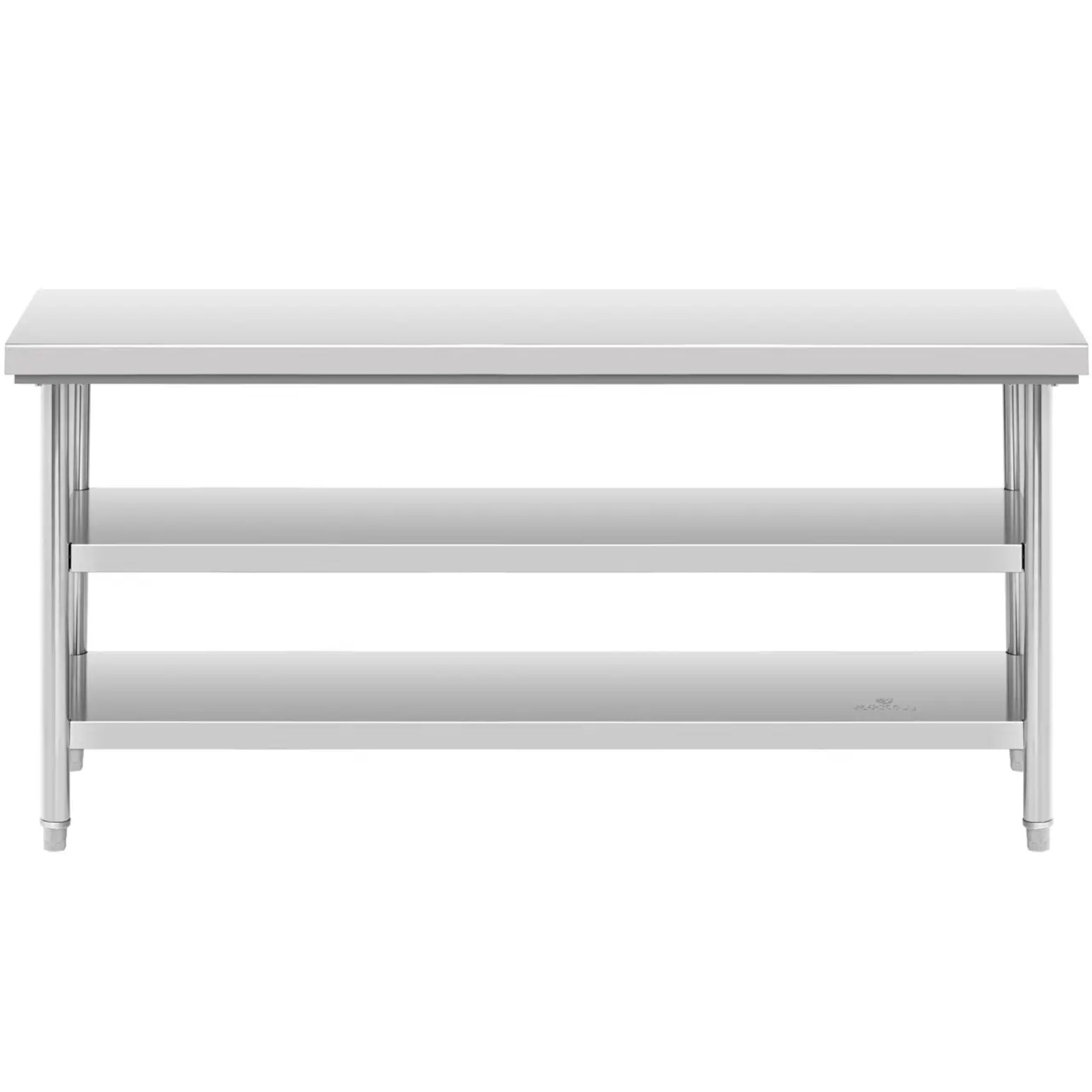 Stół roboczy marki Royal Catering to niezbędny sprzęt w każdej profesjonalnej kuchni. Sprawdzi się w restauracji, stołówce, hotelu, a także w piekarni i sklepie mięsnym. Zapewnia nie tylko dużą przestrzeń do przygotowywania posiłków, ale również do przechowywania składników oraz przyborów kuchennych. Wykonanie z trwałej stali nierdzewnej sprawia, że stół roboczy jest bardzo solidny. Jego udźwig wynosi 600 kg. Ponadto dzięki użytemu materiałowi mebel charakteryzuje się odpornością na korozję, utlenianie i gładkimi powierzchniami łatwymi w czyszczeniu. 3 obszerne poziomy gwarantują dużo miejsca i wygodny dostęp do przechowywanych sprzętów. Górny blat ma powierzchnię 180 x 70 cm, natomiast dwa dolne 166 x 46 cm. Odległość między nimi wynosi 25 cm. Mebel jest prosty do złożenia, w zestawie znajduje się instrukcja montażu oraz niezbędne akcesoria.
