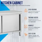 • – Stół roboczy z szafką przelotową wykonany ze stali nierdzewnej o maksymalnym udźwigu 500 kg,