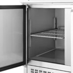 - – 2-drzwiowa szafka, duża pojemność 240 l zapewniają miejsce na jeden pojemnik GN 1/1, trzy pojemniki GN 1/2 oraz trzy GN 1/6 i nie tylko,