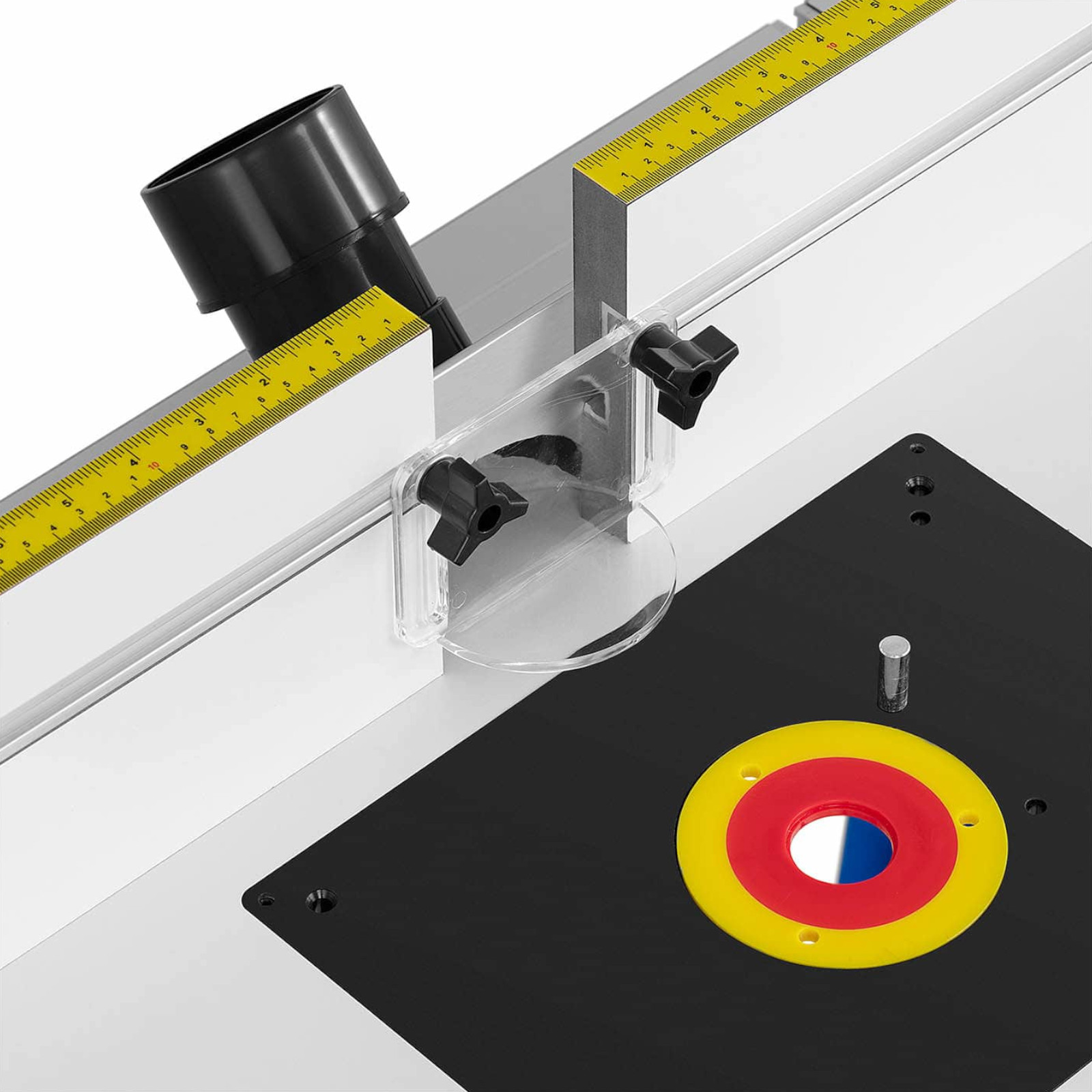 - – Precyzyjna taśma pomiarowa na płycie ułatwia pozycjonowanie obrabianego przedmiotu.