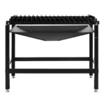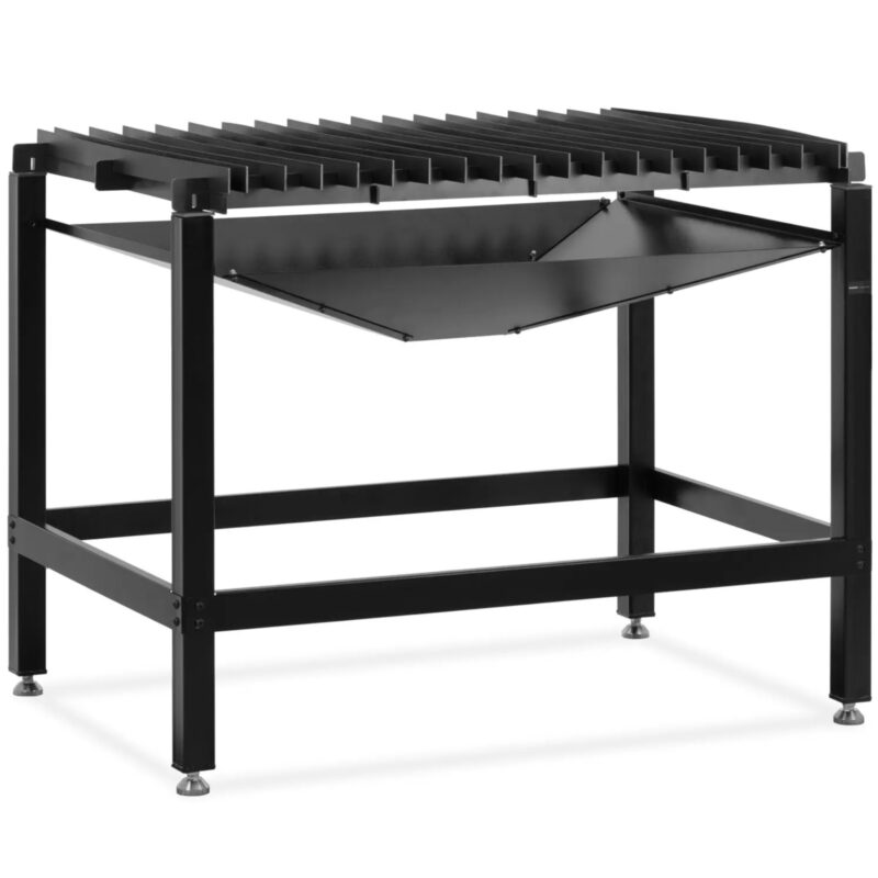 Stół do cięcia plazmą marki Stamos Welding Group jest dostosowany do wysokich wymagań przecinarek plazmowych. Trwała stalowa konstrukcja z łatwością poradzi sobie z wysokimi temperaturami powstającymi podczas cięcia łukiem. Zastosowano w nim przemyślane elementy, które znacznie ułatwiają pracę z palnikiem. Na powierzchni roboczej o wymiarach 120 x 80 cm bez wysiłku i bezpiecznie można przeciąć nawet większe elementy. Dzięki otwartej konstrukcji z blach stalowych przecinarkę plazmową prowadzi się po metalu bez bezpośredniego kontaktu łuku ze stołem roboczym. Oznacza to, że uzyskuje się precyzyjne, proste cięcia najwyższej jakości. Solidna konstrukcja z czterema nóżkami zapewnia stołowi do cięcia plazmą stabilność potrzebną do szybkiej i bezpiecznej pracy. Stół imponuje udźwigiem wynoszącym 150 kg. Panel w kształcie lejka pod blatem roboczym zapobiegnie rozpryskom lub iskrom powodującym oparzenia. Wyłapie również metalowe odłamki powstające podczas cięcia. Resztki wypadną przez otwór, więc natychmiast można je usunąć i zutylizować za pomocą metalowego pojemnika na odpady.