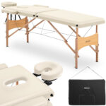 Stół łóżko do masażu drewniane przenośne składane Toulouse Beige do 227 kg beżowe
