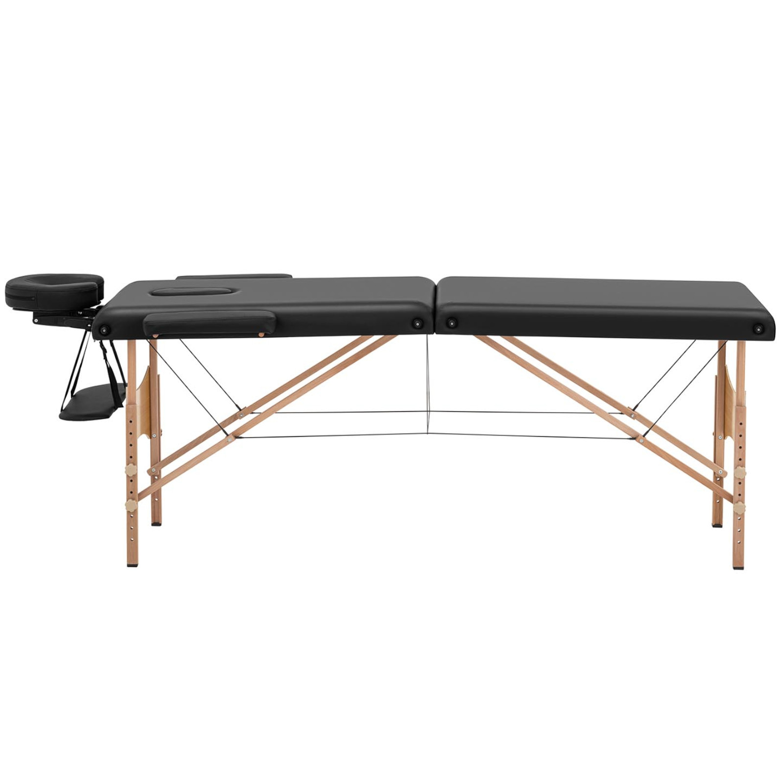 Konstrukcja stołu jest bardzo wytrzymała, posiada nośność do 227 kg. Tapicerka wykonana została z PVC, doskonale znosi działanie wody oraz olejków. Łóżko posiada regulowaną wysokość w zakresie 630 – 860 mm, posiada także antypoślizgowe podkładki nóg, które je doskonale stabilizują. Łóżko jest składane do wymiaru 925 x 170 x 600 mm. W komplecie znajduje się torba do transportu. Łóżko do masażu jest wygodne w użyciu, posiada otwór na twarz (z wyjmowaną poduszką), podłokietniki oraz półkę na akcesoria.