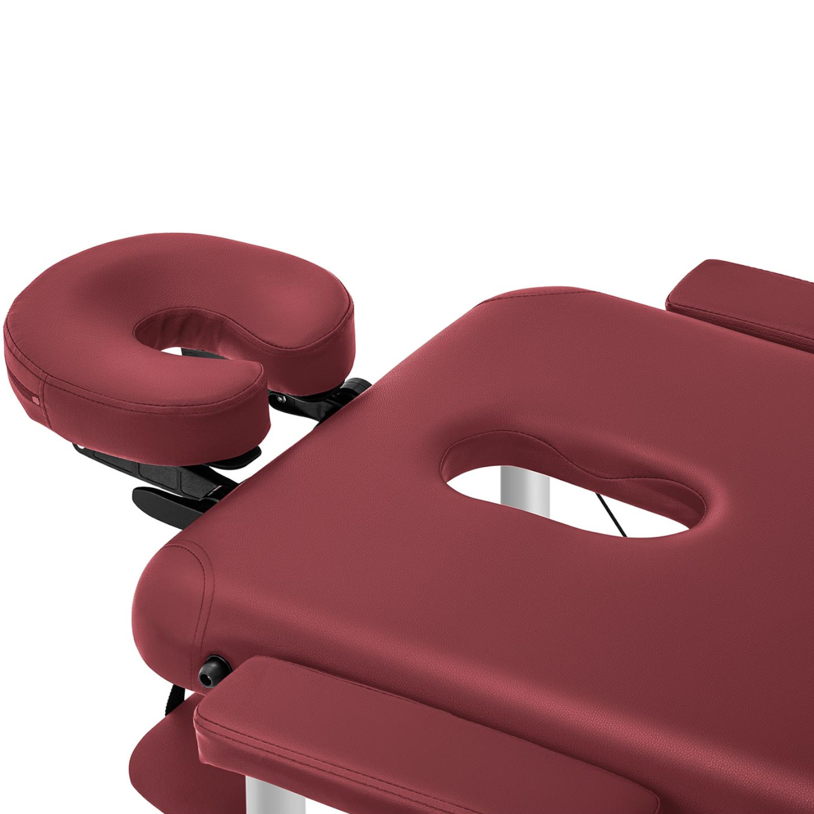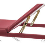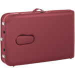 Łóżko składane jest jak walizka z uchwytami. Konstrukcję wykonano z aluminium, jest lekka i solidna, zapewnia nośność do 180 kg. Wysokość jest regulowana w zakresie 600 – 810 mm. Tapicerka posiada grubość 40 mm, pozwala wygodnie przeprowadzać nawet dłuższe zabiegi. Podnóżek można ustawić pod różnymi kątami w zakresie od 15 do 50°. Zagłówek odchylany jest o 45° w górę i w dół. Poduszka pod kark wspiera wygodną pozycję. Zagłówek posiada wycięcie na głowę. Obicie wykonane jest z przyjemnego w dotyku i łatwego w utrzymaniu czystości PVC. Doskonale znosi działanie wody oraz olejków. W komplecie znajduje się torba do wygodnego transportu.