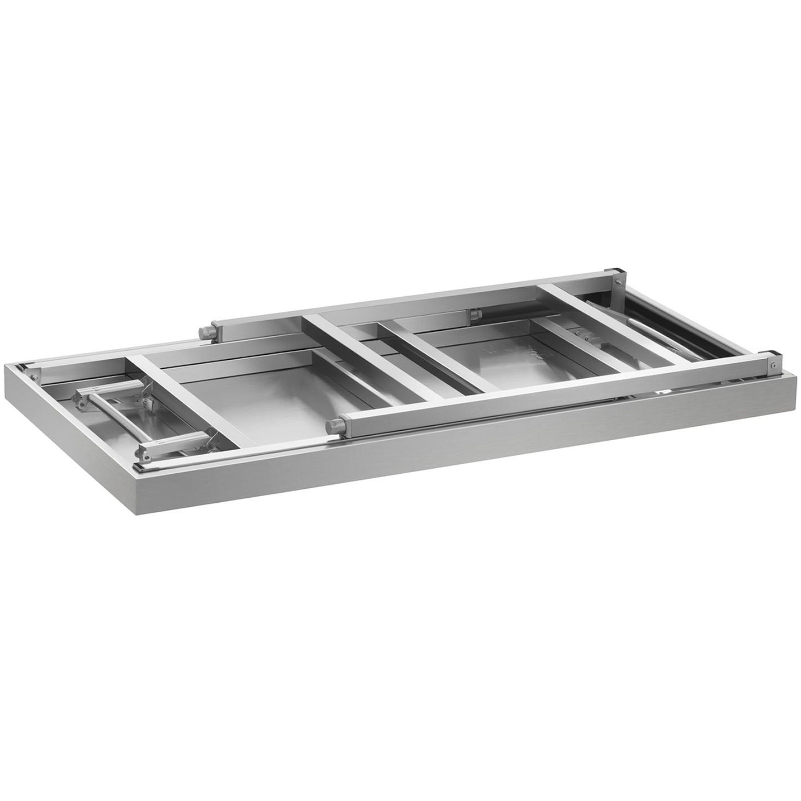 Stół posiada system składania sprężynowego – w szybki i łatwy sposób można go złożyć i transportować. Został wykonany ze stali nierdzewnej co jest gwarancją trwałości i stabilności w trakcie pracy. Jest odporny na korozję, uporczywe zabrudzenia i uszkodzenia mechaniczne. Nie wchodzi w reakcje z żywnością, jest bezpieczny dla zdrowia. Blat o wymiarach 180×60 cm zapewnia dużo miejsca. Dzięki regulowanym nóżkom wysokość stołu można zmienić w zakresie +/- 10mm. Udźwig stołu wynosi 230 kg.