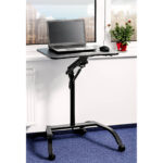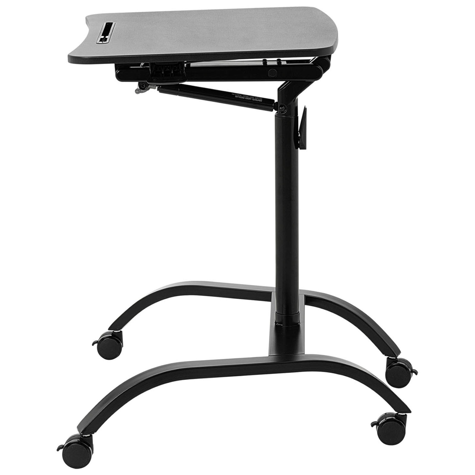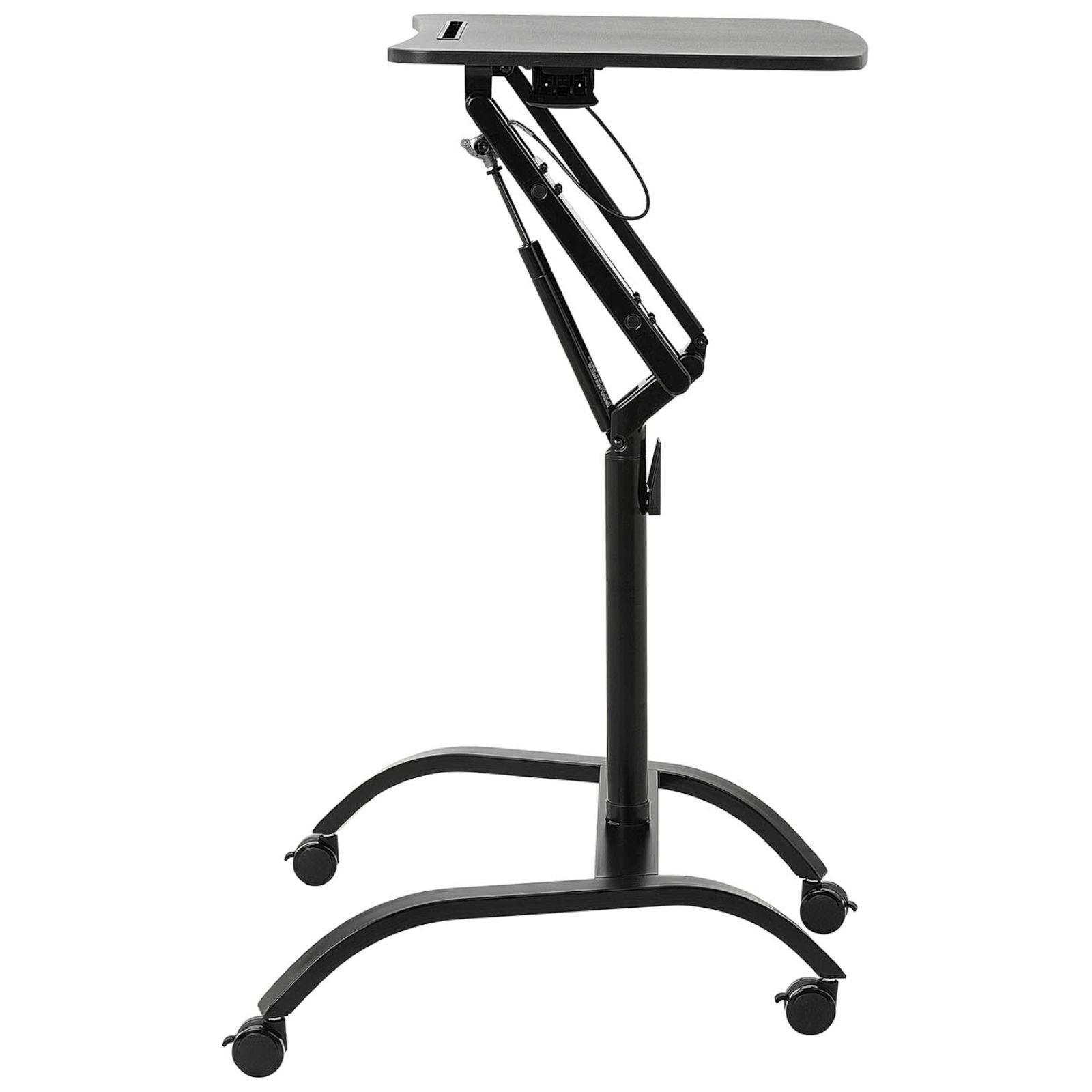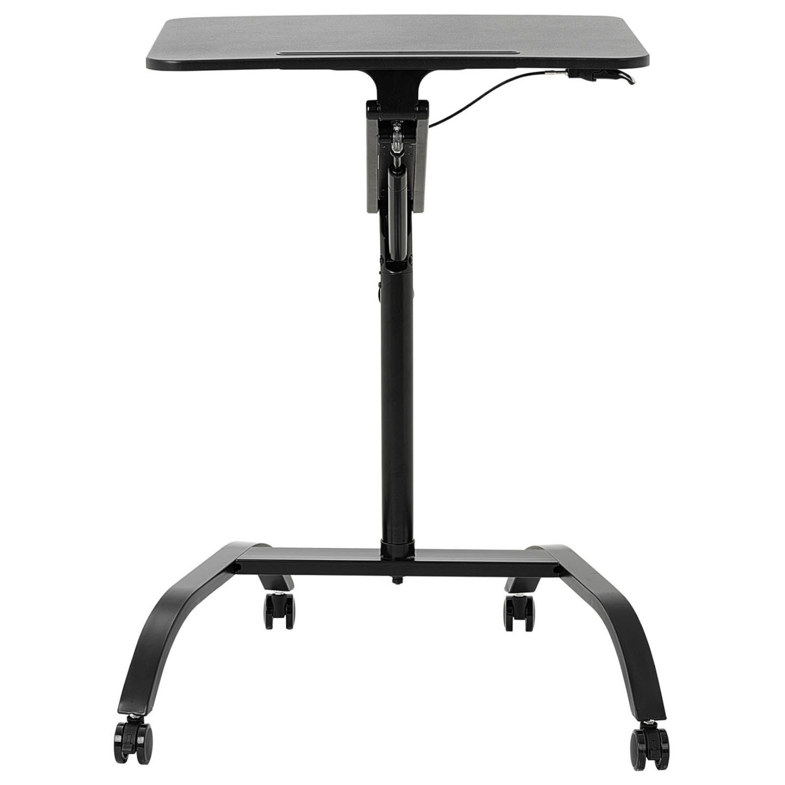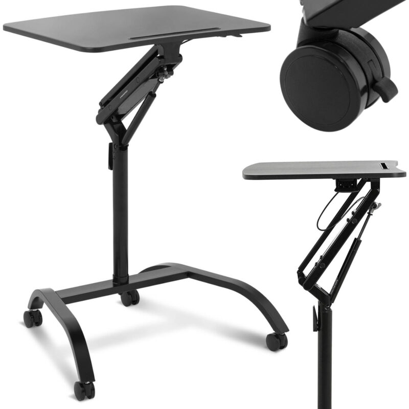 Stolik pod laptopa marki Fromm & Starck pozwoli wygodnie pracować z różnymi urządzeniami mobilnymi. Regulacja wysokości w zakresie 850-1160 mm umożliwi dostosowanie poziomu do wzrostu lub pozycji użytkownika. Sprężyna gazowa odpowiada za sprawne podnoszenie. Do jej obsługi służy pojedyncza dźwignia. Stolik pod laptopa wyposażono w cztery kółka ułatwiające przemieszczanie. Rama została wykonana ze stali. Z kolei do stworzenia blatu o powierzchni 895 x 540 mm zastosowano płytę MDF. Dzięki temu jest w stanie wytrzymać obciążenie nawet do 10 kg.