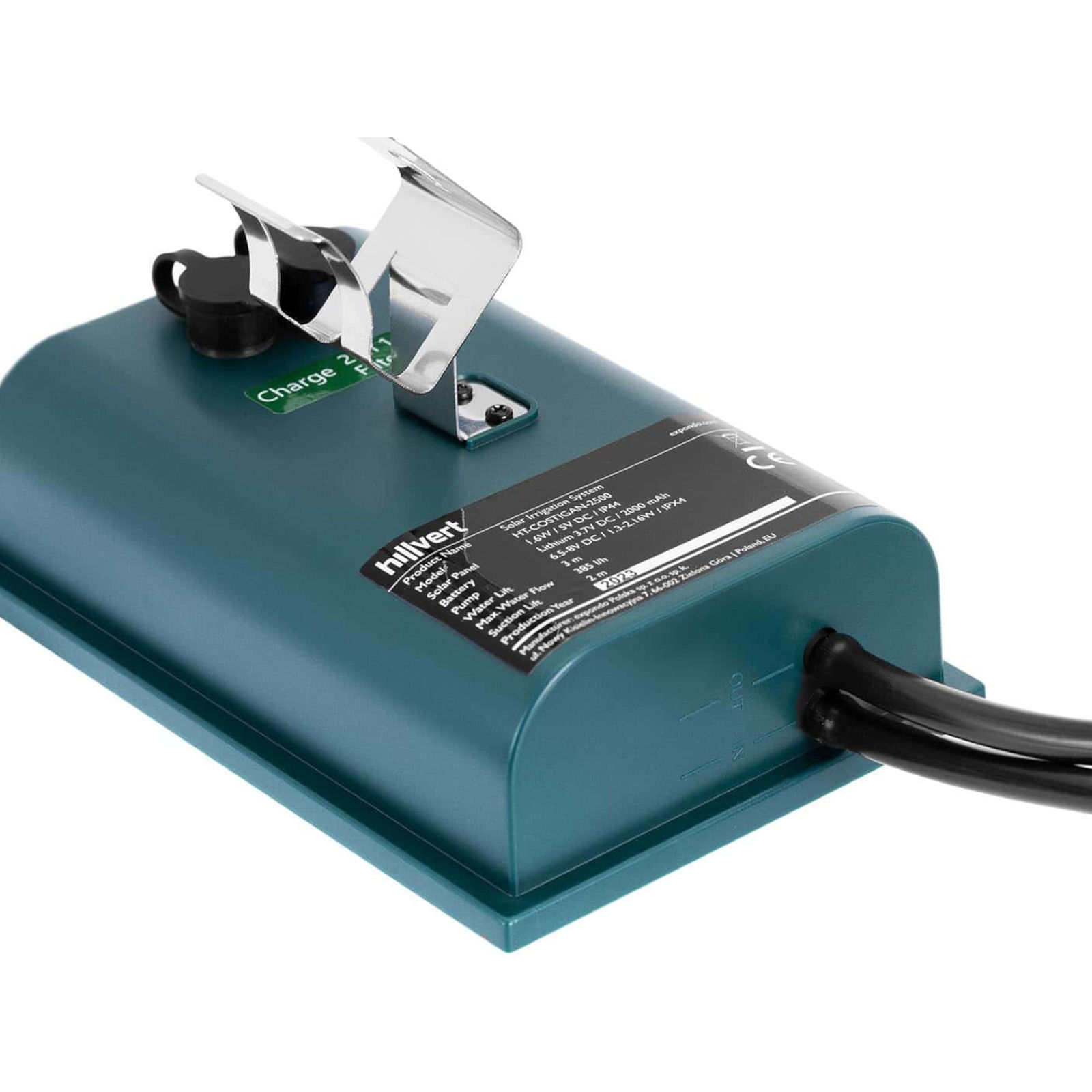 System nawadniania kropelkowego umożliwia podlewanie roślin bez konieczności posiadania przyłącza do wody i prądu. Urządzenie zasilane jest przez panel słoneczny, który ładuje akumulator, gdy świeci słońce. W słoneczne dni potrzebuje 6-8 godz., aby się w pełni naładować. Pompa pobiera wodę z pojemnika, takiego jak np. beczka na deszczówkę. Podlewanie działa w pełni automatycznie. Za pomocą panelu sterującego można wybrać czas nawadniania: 1 lub 5 minut/24 godz.; 2 lub 8 minut/48 godz.; 3 lub 12 min/72 godz. Pompa zasysa wodę ze zbiorników do 2 m głębokości i transportuje ją do wysokości 3 m.