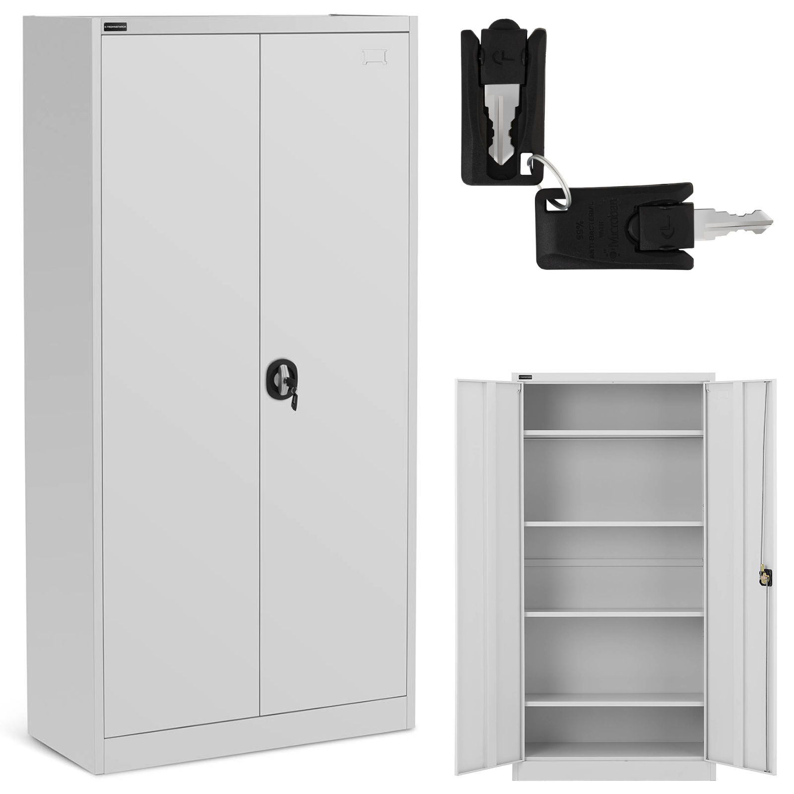 Szafa metalowa marki Fromm & Starck idealnie sprawdzi się w biurach, urzędach, bibliotekach, szkołach i wszędzie gdzie trzeba przechowywać dokumenty oraz inne przedmioty. Szafa biurowa posiada cztery pojemne półki, które wytrzymają obciążenie aż do 160kg. Wytrzymały zamek z kluczem skutecznie zabezpiecza zawartość. Konstrukcja szafy na dokumenty została wykonana ze stali. Szafa metalowa zawiera wszystkie elementy do samodzielnego montażu.