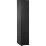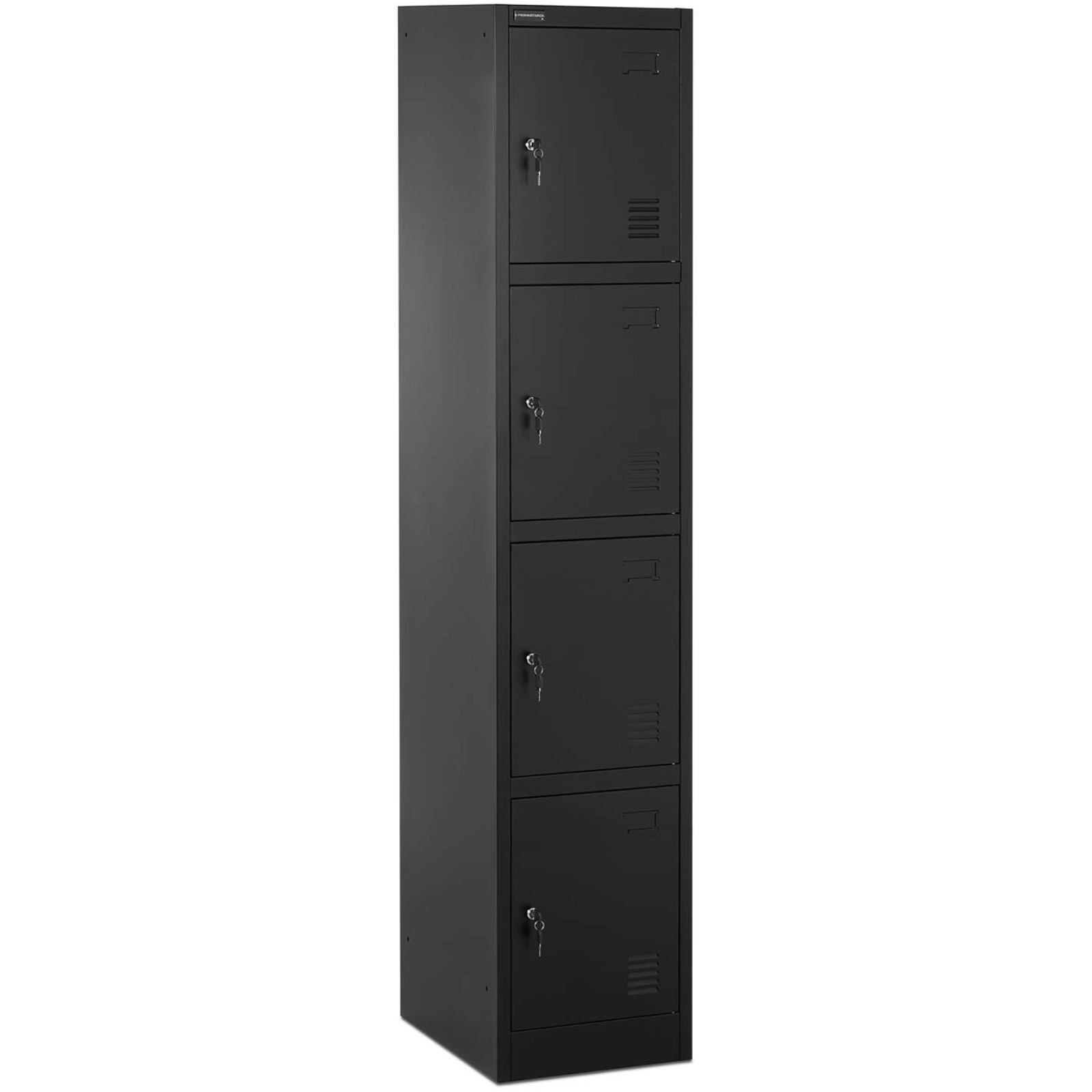 Szafka skrytkowa marki Fromm & Starck sprawdzi się w szatniach czy pomieszczeniach socjalnych do przechowywania osobistych rzeczy. Solidna konstrukcja wykonana została ze stali i pokryta żywicą epoksydową. Znosi obciążenie do 80 kg. 4 oddzielne skrytki zamykane są na klucze dla ochrony przed nieupoważnionym dostępem. Każda skrytka zawiera wieszak na ubranie i półkę. Otwory wentylacyjne zapewniają optymalną cyrkulację powietrza.