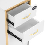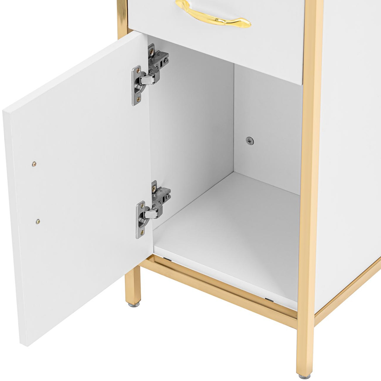 Szafka marki Physa wprowadza porządek i pozwala na łatwe przechowywanie produktów. Sprawdzi się szczególnie w salonie fryzjerskim, kosmetycznym czy w salonie tatuażu. Dzięki wymiarom 80 x 35 x 30 cm nie zajmuje wiele miejsca i dyskretnie wtapia się w wystrój wnętrza. Solidna konstrukcja jest wyjątkowo stabilna. 2 szuflady oraz pojemna szafka dolna pomieszczą wszystkie niezbędne akcesoria. Na górnej półce postawisz pozostałe sprzęty, aby mieć je pod ręką. Dzięki temu zadbasz o płynność swojej pracy. Szafka wykonana została z wytrzymałej płyty MDF. Gładką powierzchnię szybko i wygodnie wyczyścić.