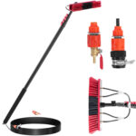 Szczotka teleskopowa do mycia ulsonix pomoże wyczyścić z łatwością panele fotowoltaiczne, okna i inne szklane powierzchnie. Za sprawą wysuwanej rączki dotrze również do trudno dostępnych miejsc. Szczotka do mycia okien nadaje się więc idealnie do profesjonalnego sprzątania budynków. Szczotka ma przyłącze wody i 5 sekcji opryskowych. Główkę szczoteczki przechyla się za pomocą adaptera kątowego. Szczotkę do mycia z teleskopową rączką można wydłużyć do 7200 mm. Po złożeniu urządzenie ma wymiary 1750 mm. Dzięki dużej długości myjka jest uniwersalna. Można z łatwością dotrzeć do wysoko położonych miejsc bez użycia drabiny. Szczotkę teleskopową można podłączyć do myjki wysokociśnieniowej za pomocą węża. Dzięki temu szybko i łatwo usuwa się nawet uporczywy brud bez konieczności silnego szorowania. Myjka teleskopowa delikatnie wyczyści moduły fotowoltaiczne – zarówno poli-, jak i monokrystaliczne. Regularna konserwacja pomaga utrzymać wydajność paneli słonecznych. Teleskopowy uchwyt szczotki do mycia wykonany jest z wytrzymałego aluminium.. Mocne blokowanie zapobiega obracaniu się główki szczoteczki wokół własnej osi podczas pracy. Zamiast tego głowica znajduje się na swoim miejscu, dzięki czemu można myć bez przeszkód. Szczotka do okien ma ergonomiczny kształt, który zapewnia dobry chwyt. Zastosowane materiały są lekkie i łatwe do przenoszenia, nawet podczas długiego sprzątania.