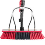 Szczotka teleskopowa do mycia ulsonix pomoże wyczyścić z łatwością panele fotowoltaiczne, okna i inne szklane powierzchnie. Za sprawą wysuwanej rączki dotrze również do trudno dostępnych miejsc. Szczotka do mycia okien nadaje się więc idealnie do profesjonalnego sprzątania budynków. Szczotka ma przyłącze wody i 6 sekcji opryskowych. Główkę szczoteczki przechyla się za pomocą adaptera kątowego. Szczotkę do mycia z teleskopową rączką można wydłużyć do 9050 mm. Po złożeniu urządzenie ma wymiary 1800 mm. Dzięki dużej długości myjka jest uniwersalna. Można z łatwością dotrzeć do wysoko położonych miejsc bez użycia drabiny. Szczotkę teleskopową można podłączyć do myjki wysokociśnieniowej za pomocą węża. Dzięki temu szybko i łatwo usuwa się nawet uporczywy brud bez konieczności silnego szorowania. Myjka teleskopowa delikatnie wyczyści moduły fotowoltaiczne – zarówno poli-, jak i monokrystaliczne. Regularna konserwacja pomaga utrzymać wydajność paneli słonecznych. Teleskopowy uchwyt wykonany jest w 50% z włókna szklanego i w 50% z włókna węglowego. Mocne blokowanie zapobiega obracaniu się główki szczoteczki wokół własnej osi podczas pracy. Zamiast tego głowica znajduje się na swoim miejscu, dzięki czemu można myć bez przeszkód. Szczotka do okien ma ergonomiczny kształt, który zapewnia dobry chwyt. Zastosowane materiały są lekkie i łatwe do przenoszenia, nawet podczas długiego sprzątania.