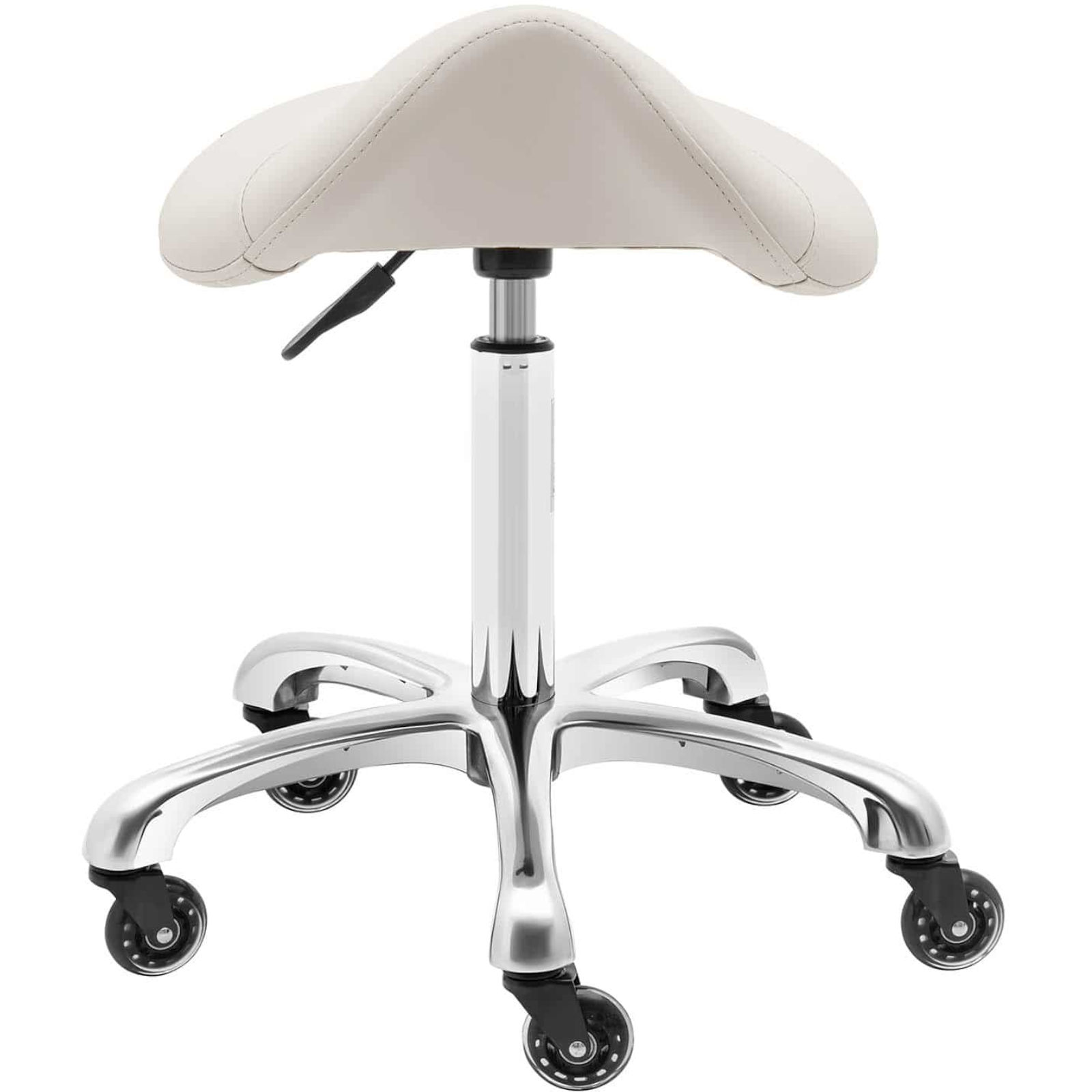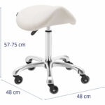Krzesło siodłowe marki Physa odciąża kręgosłup i zapewnia prawidłowe krążenie. Nowoczesny design doskonale prezentuje się w każdym salonie lub biurze. Duże siedzisko ma wymiary 41 x 37 cm. Kółka pozwalają łatwo przesunąć hoker kosmetyczny w wybrane miejsce. Nośność krzesła wynosi 150 kg. Sprężyna gazowa płynnie reguluje wysokość w zakresie od 57 do 75 cm. Wyściółka z pianki zapewnia wygodę użytkowania. Siedzisko pokryte jest imitacją skóry, dlatego łatwo utrzymasz je w czystości.