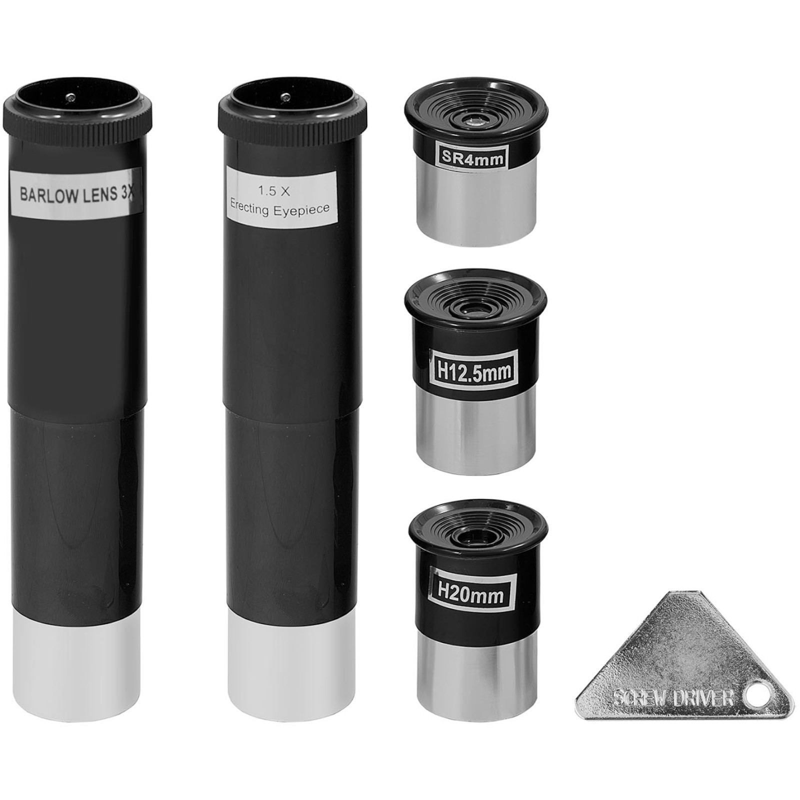 - – Duży zestaw startowy z okularami, soczewką Barlowa, soczewkami odwracającymi i osłonami ochronnymi.