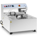 Temperówka do czekolady marki Royal Catering pozwala idealnie przygotować masę do pysznych czekoladowych kreacji. Temperowanie nadaje czekoladzie idealny połysk po schłodzeniu i idealną konsystencję do spożycia. Maszyna sprawdzi się w fabryce czekolady czy w cukierni. Urządzenie dzięki prostej konstrukcji zapewnia wygodną pracę. Duży panel sterowniczy pozwala wybrać żądaną prędkość mieszania i temperaturę. Dzięki temperaturze do 110°C można roztapiać i temperować w urządzeniu czekoladę wszelkiego rodzaju. Ciągłe mieszanie zapewnia elastyczność i równomierną temperaturę masy. Słodka masa łatwo wypełnia foremki do czekolady oraz pralin przez dzióbek. Dzięki kompaktowym wymiarom maszyna do czekolady pasuje do każdej powierzchni roboczej. Gumowe nóżki bezpiecznie utrzymują maszynę na miejscu i chronią blat przed zarysowaniami.