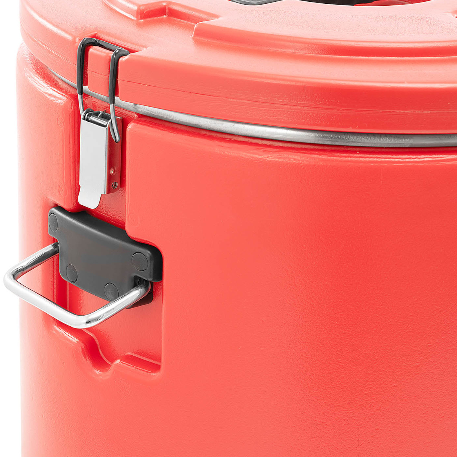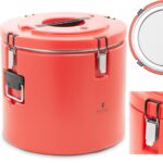 Termos gastronomiczny marki Royal Catering zaprojektowany został do wygodnego transportu ciepłych oraz zimnych dań i napojów. Idealnie sprawdzi się w restauracjach, hotelach, stołówkach oraz do cateringu. Termos ma pojemność 30 l i wymiary śr. 410 x 380 mm. Wnętrze wykonane zostało z żaroodpornej i łatwej w czyszczeniu stali nierdzewnej, obudowa zaś z wytrzymałego tworzywa sztucznego. Dwuścienna izolacja pozwala utrzymać temperaturę dań, która zmienia się o ok. 1-2°C/h. Termos zamykany jest na zatrzaski oraz posiada odporny na wstrząsy spód. Uchwyty ułatwiają przenoszenie. Termos jest bardzo higieniczny, odporny na zabrudzenia oraz neutralny w kontakcie z żywnością.