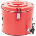 Termos gastronomiczny marki Royal Catering zaprojektowany został do wygodnego transportu ciepłych oraz zimnych dań i napojów. Idealnie sprawdzi się w restauracjach, hotelach, stołówkach oraz do cateringu. Termos ma pojemność 15 l i wymiary śr. 335 x 300 mm. Wnętrze wykonane zostało z żaroodpornej i łatwej w czyszczeniu stali nierdzewnej, obudowa zaś z wytrzymałego tworzywa sztucznego. Podwójna izolacja pozwala utrzymać temperaturę dań, która zmienia się o ok. 1-2°C/h. Termos zamykany jest na zatrzaski oraz posiada odporny na wstrząsy spód. Uchwyty i kranik ułatwiają przenoszenie i nalewanie napojów. Termos jest bardzo higieniczny, odporny na zabrudzenia oraz neutralny w kontakcie z żywnością.