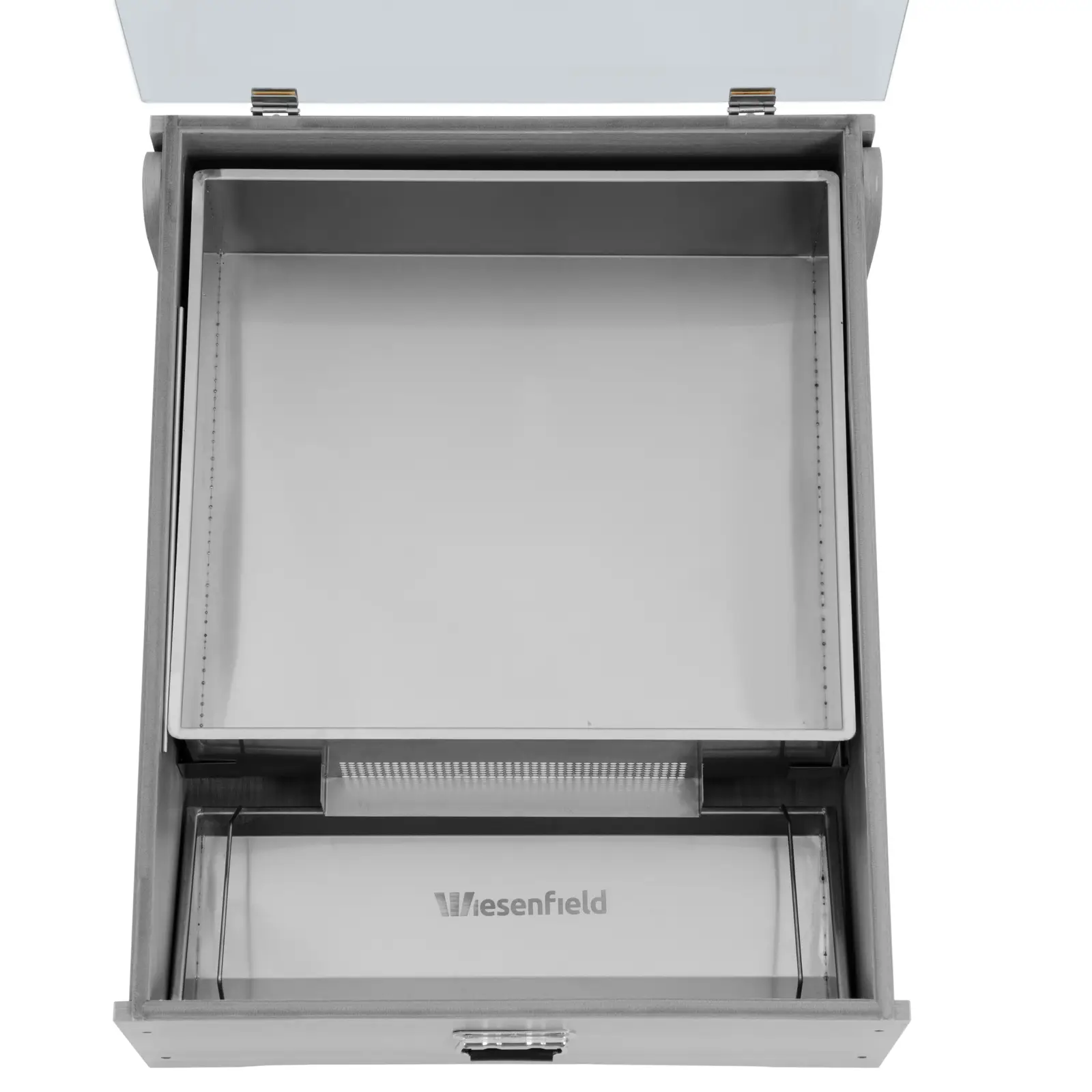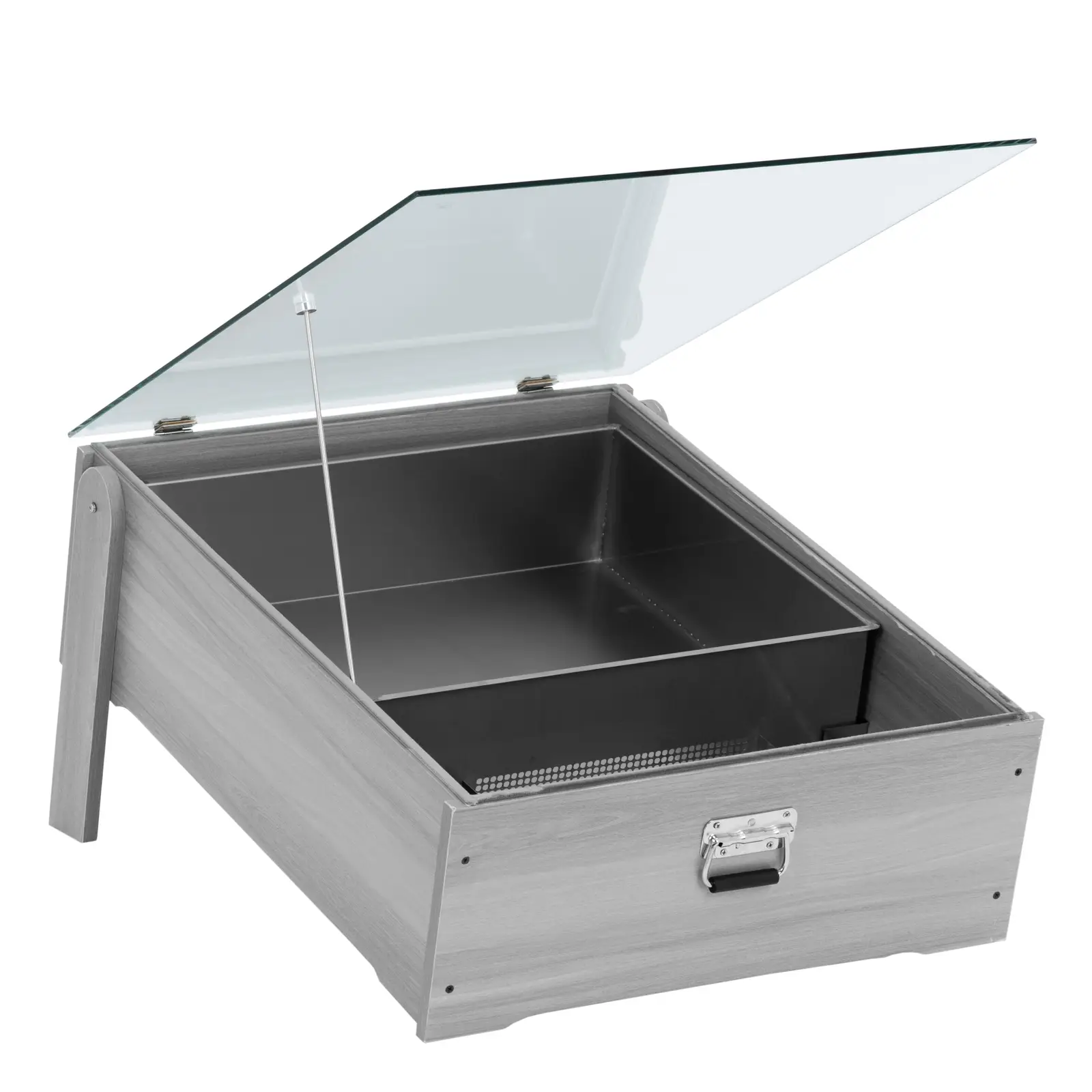 - – Pokrywa ze szkła hartowanego utrzymuje ciepło w topniku do wosku i otwiera się ją za pomocą uchwytu w celu wymiany pojemników,