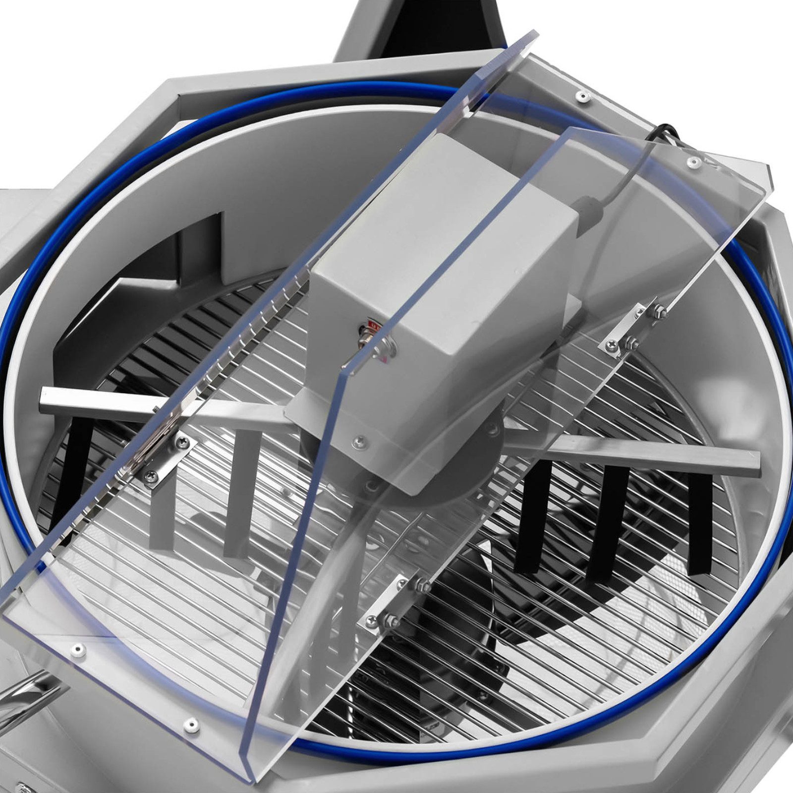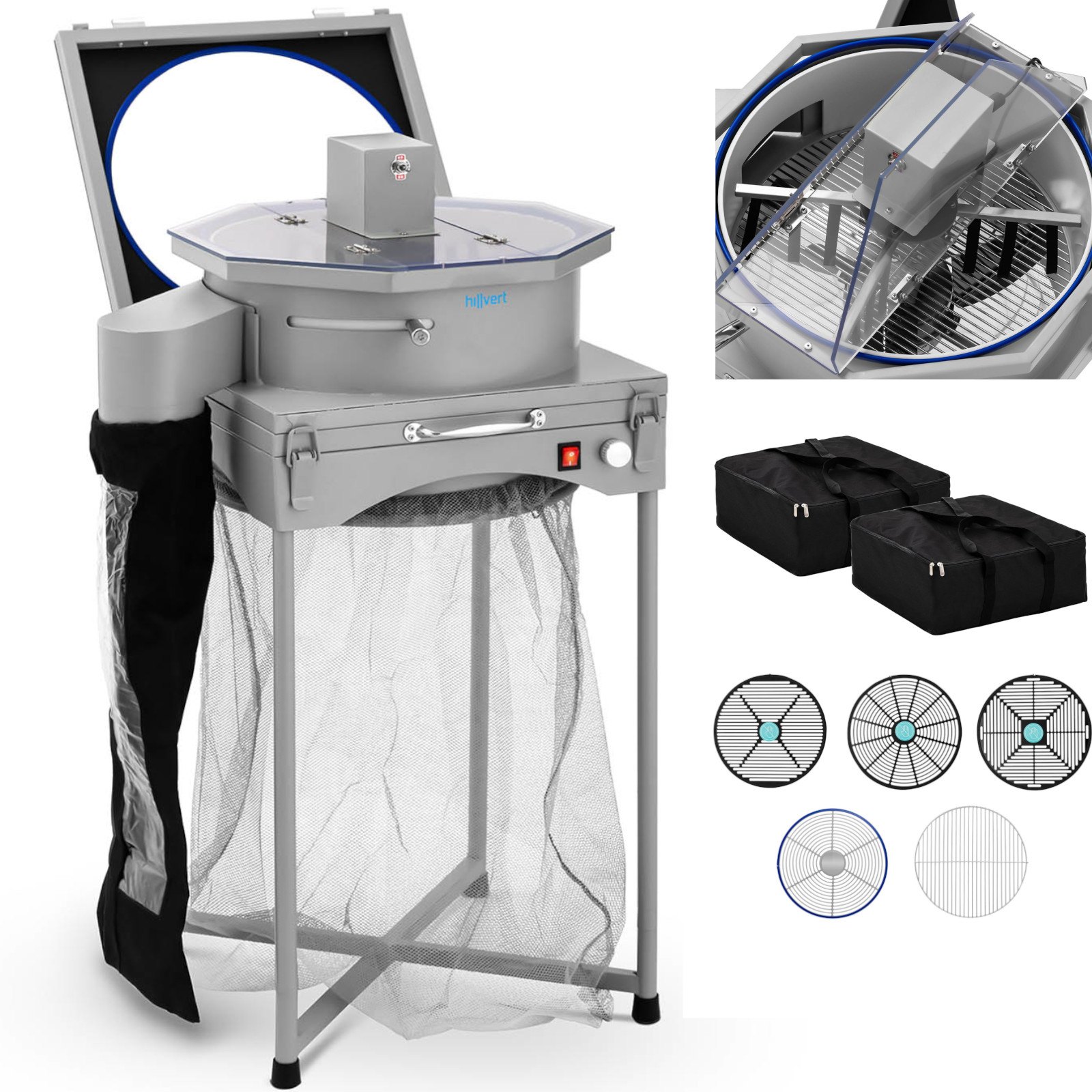 Trymer do liści marki Hillvert pozwala na rozdrabnianie, czyste cięcie bez niszczenia poszczególnych części czy skuteczne oddzielanie kwiatów. Urządzenie wyposażono w cichy silnik elektryczny 150 W, który jest niezawodny i wymaga niewielkiej konserwacji. Otwór pojemnika ma 390 mm. Zakładając górna nasadkę możliwe jest przejście z przycinania ręcznego na automatyczne. Obracające się palce poruszają się zarówno z ruchem wskazówek zegara jak i w przeciwnym kierunku. Dwa duże otwory umożliwiają dodawanie kwiatów czy pąków. 3 duże ostrza wirnika wykonane zostały ze stali nierdzewnej i są idealnie wyważone. Tworzą one ssanie w maszynie i tym samym przyciągają rośliny do przycięcia. Prędkość obrotowa regulowana bezstopniowo wynosi 1800 obr./min, umożliwia dostosowanie urządzenia do indywidualnych wymagań. Wolne obroty będą odpowiednie do delikatnych kwiatów, wyższe zaś pozwolą rozdrobnić gałęzie. Ostrza wykonane zostały z trwałych materiałów, są łatwe w pielęgnacji i można je myć w zmywarce. Wymienne siatki umożliwiają szybkie i wygodne wyczyszczenie sprzętu ze zbiorów. Wysokie ściany zewnętrzne oraz obrotowe ostrza oddzielono kratką zapewniają bezpieczeństwo podczas pracy.