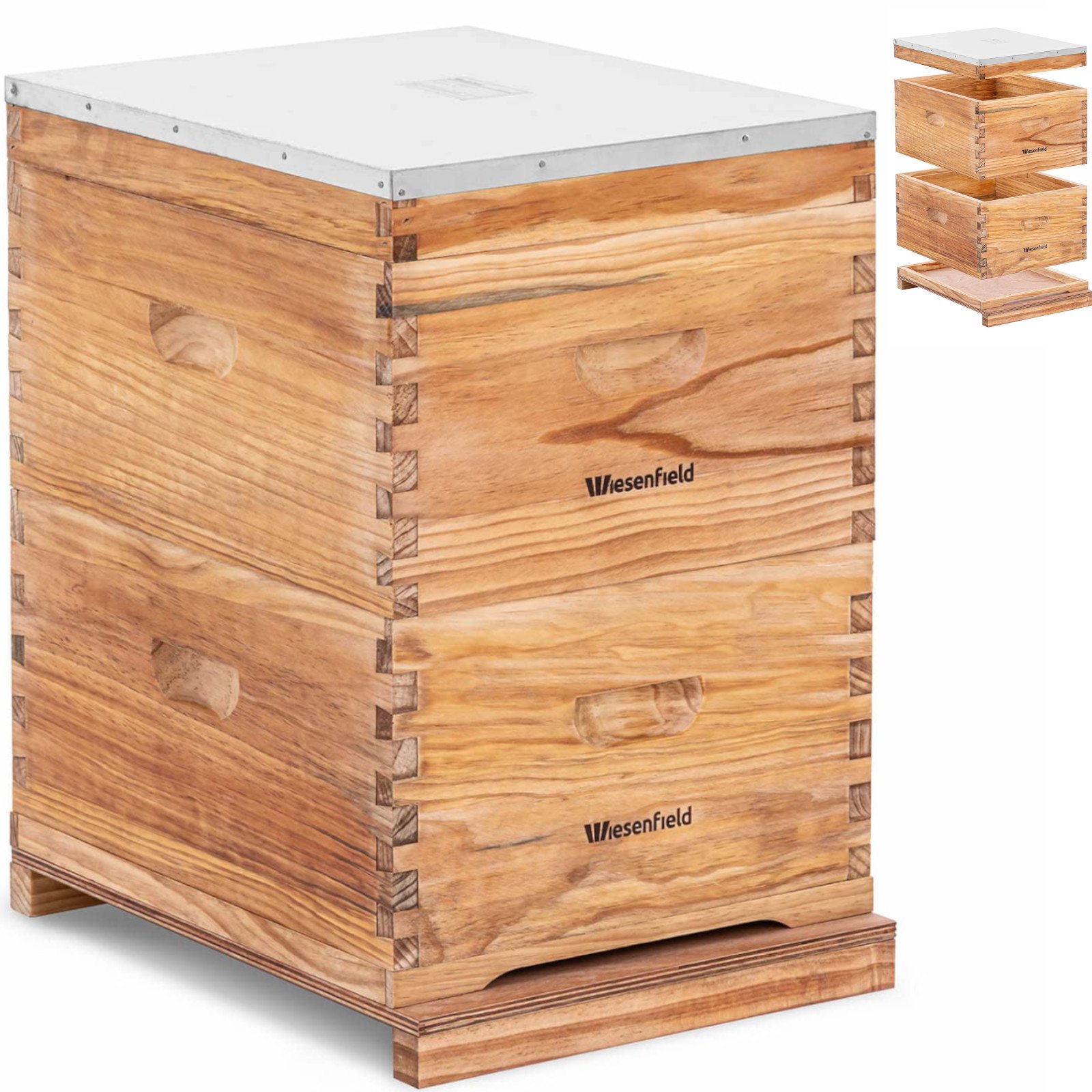 Ul dla pszczół firmy Wiesenfield jest właściwym wyborem zarówno dla profesjonalistów, jak i pszczelarzy hobbystów. Ul został wykonany z drewna sosny kalifornijskiej o grubości 20 mm. Materiał ten łączy lekkość z wysoką wytrzymałością – zarówno w suchym, jak i wilgotnym środowisku. Pokrywa ze stali nierdzewnej oraz wysokiej jakości wykonanie z połączeniami na jaskółczy ogon sprawiają, że ul jest odporny na wpływy zewnętrzne. W środku dzięki doskonałej izolacji panują optymalne warunki termiczne dla pszczół. Dwa otwory z metalowymi osłonami zapewniają dobrą wentylację. Zagłębienia z każdej strony pozwalają z łatwością używać, pielęgnować lub transportować ul. Pokrywa i kaseta podłogowa z otworem wejściowym uzupełniają konstrukcję.