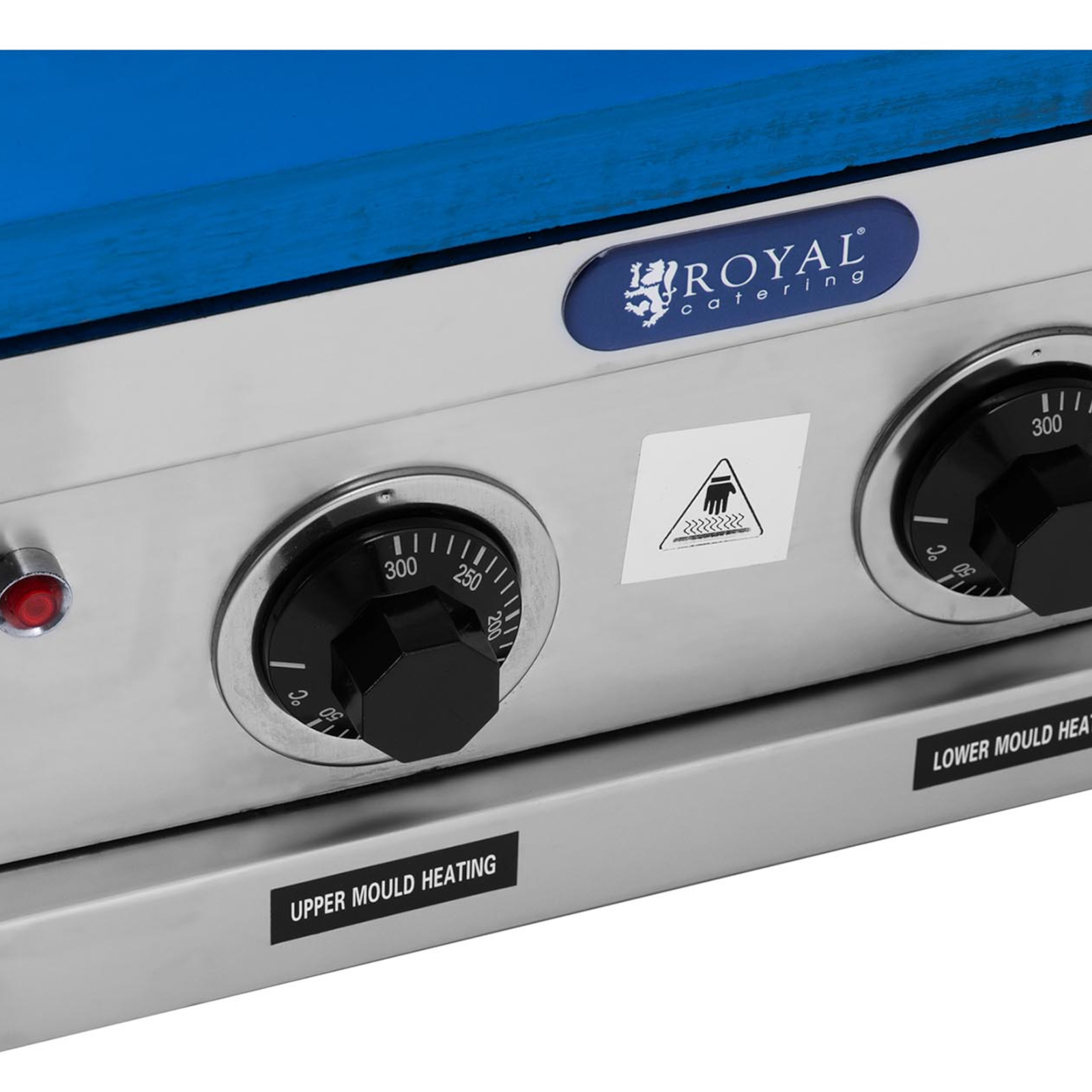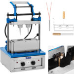 Waflownica marki Royal Catering dzięki swojej mocy 2400 W pozwala wytworzyć 100-120 wafli / godzinę. W zależności od tego jak chrupiące mają być rożki ich pieczenie zajmuje od 1 do 2 min. Wafle do lodów produkowane są w klasycznym stożkowym kształcie i mają wymiary 74 x 124 mm. Użytkowanie, czyszczenie i konserwacja maszyny do wafli przebiega łatwo i intuicyjnie. Dołączona miarka ułatwia tworzenie idealnych rożków lodowych. Urządzenie wykonane zostało z trwałych i odpornych materiałów takich jak stal nierdzewna, żeliwo, stal i aluminium.