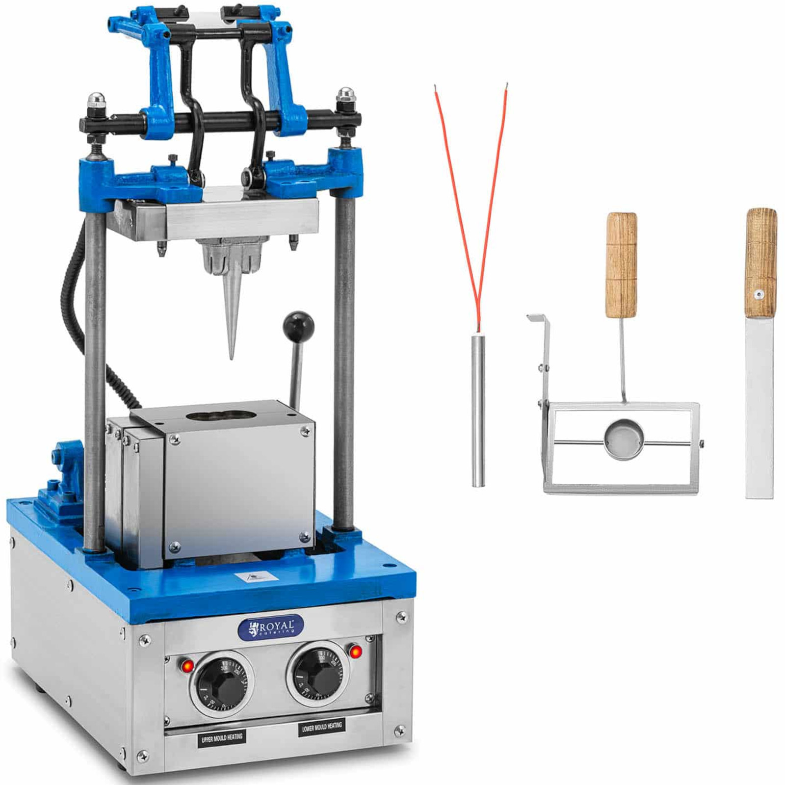 Waflownica marki Royal Catering dzięki swojej mocy 1500 W pozwala wytworzyć 50-60 wafli / godzinę. W zależności od tego jak chrupiące mają być rożki ich pieczenie zajmuje od 1 min. Wafle do lodów produkowane są w klasycznym stożkowym kształcie i mają wymiary 74 x 124 mm. Użytkowanie, czyszczenie i konserwacja maszyny do wafli przebiega łatwo i intuicyjnie. Dołączona miarka ułatwia tworzenie idealnych rożków lodowych. Urządzenie wykonane zostało z trwałych i odpornych materiałów takich jak stal nierdzewna, żeliwo, stal i aluminium.