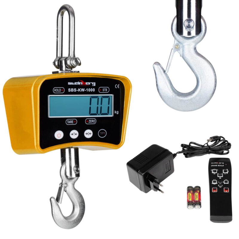 Elektroniczna waga hakowa służąca do ważenia przedmiotów podwieszonych na dolnym karabińczyku. Wygodna w użyciu posiada wiele przydatnych funkcji oraz pilota do zdalnego sterowania.