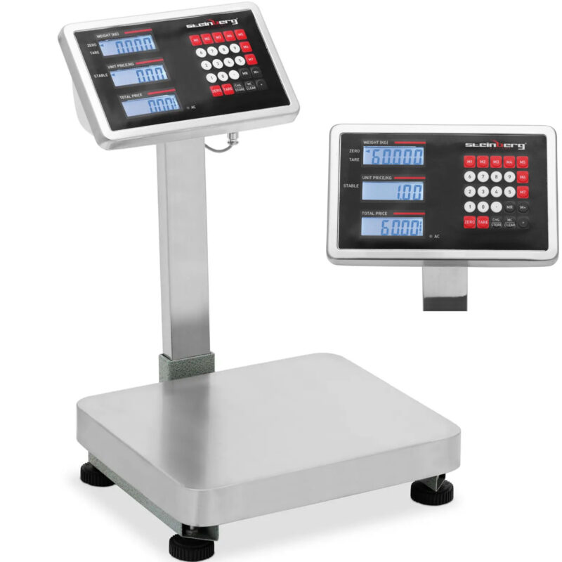 Waga kontrolna marki Steinberg Systems waży towary do 60 kg z precyzją 0,005 kg. Jest łatwa w użyciu i mobilna. Oferuje wszystkie niezbędne funkcje i przyciski do bezproblemowej i łatwej obsługi. Nawigacja w menu jest intuicyjna. Urządzenie posiada również panel sterowania z wyraźnym wyświetlaczem LCD. Cyfry mają rozmiar 17 mm i są łatwe do odczytania. Wagę można zasilać za pomocą baterii lub kabla sieciowego. Bateria wystarcza na 120 godz. Niezwykle solidna obudowa najwyższej klasy wagi kontrolnej chroni urządzenie przed wpływami zewnętrznymi i wstrząsami. Powierzchnia do ważenia jest otwarta z trzech stron. Umożliwia to łatwe ważenie towarów większych niż 290 x 340 x 92 mm. Zintegrowane cztery nóżki zapewniają bezpieczeństwo i stabilność.