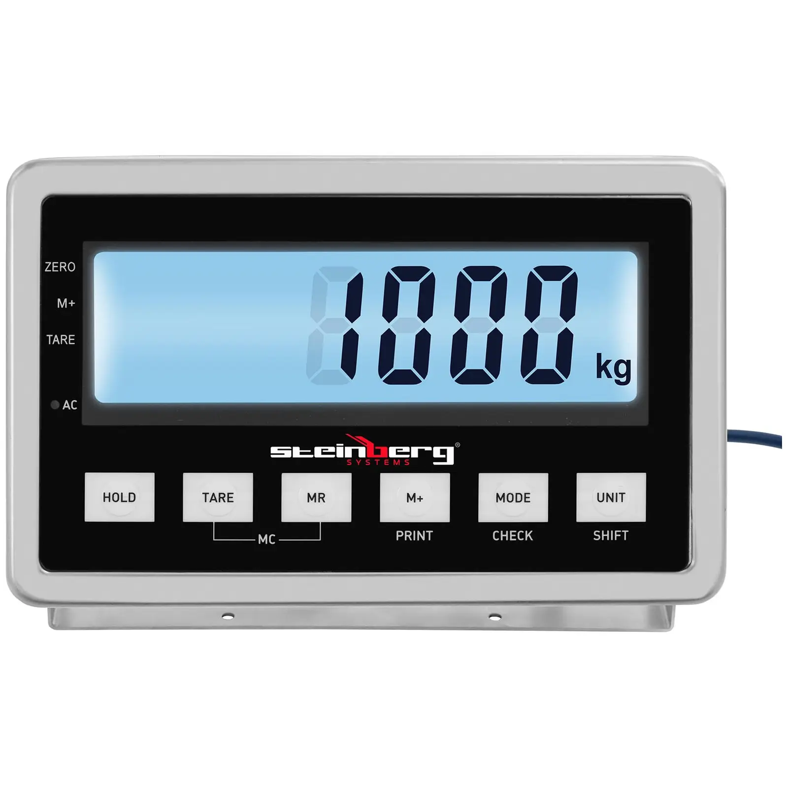 Waga platformowa marki Steinberg Systems posiada udźwig 1000 kg i dokładność 0,2 kg. Doskonale sprawdza się jako waga w magazynie, hurtowni, przemyśle lub handlu. Ryflowana platforma ważąca o wymiarach 1200 x 1200 mm zapewnia wystarczająco dużo miejsca nawet dla większych przedmiotów. Dzięki smukłej konstrukcji waga nie zajmuje dużo miejsca. Ze względu na niewielką wysokość i grubość płyty (4,3 mm), urządzenie leży blisko podłogi, co ułatwia ładowanie dużych ciężarów. Waga zasilana jest baterią, która pozwala pracować przez 50 godz. Bez podświetlenia czas pracy wynosi nawet 70 godzin. Oznacza to, że waga może być eksploatowana bez zasilania przez cały dzień. Dzięki temu nadaje się także do użytku mobilnego. Alarm niskiego poziomu baterii zapobiega nagłemu wyłączeniu się wagi podczas pracy. Funkcje wstrzymania, tarowania, zerowania, liczenia, dodawania, zmiany jednostek i kalibracji uwzględniają wszystkie istotne procesy handlowe, np. przygotowanie do wysyłki. Indywidualne ustawienia umożliwiają elastyczne stosowanie wielu technik ważenia. Podświetlany wyświetlacz LCD ułatwia odczytywanie mierzonych wartości w ciemnych pomieszczeniach takich jak magazyny. Dzięki rozmiarom 184 x 51 mm wszystkie wartości na ekranie są czytelne i można je łatwo rozpoznać. Panel sterowania jest połączony z wagą za pomocą przewodu, co znacznie ułatwia obsługę. Za pomocą wagi podłogowej można wyświetlić wynik pomiaru w kg, g, t lub lb. Jeśli waga została przeciążona, pojawi się stosowne ostrzeżenie, aby uniknąć przekroczenia limitów użytkowania wagi. Cztery nóżki wykonane ze stali węglowej o wysokości 83 mm i średnicy 57 mm są nie tylko stabilne, ale także antypoślizgowe dzięki powłoce PVC.