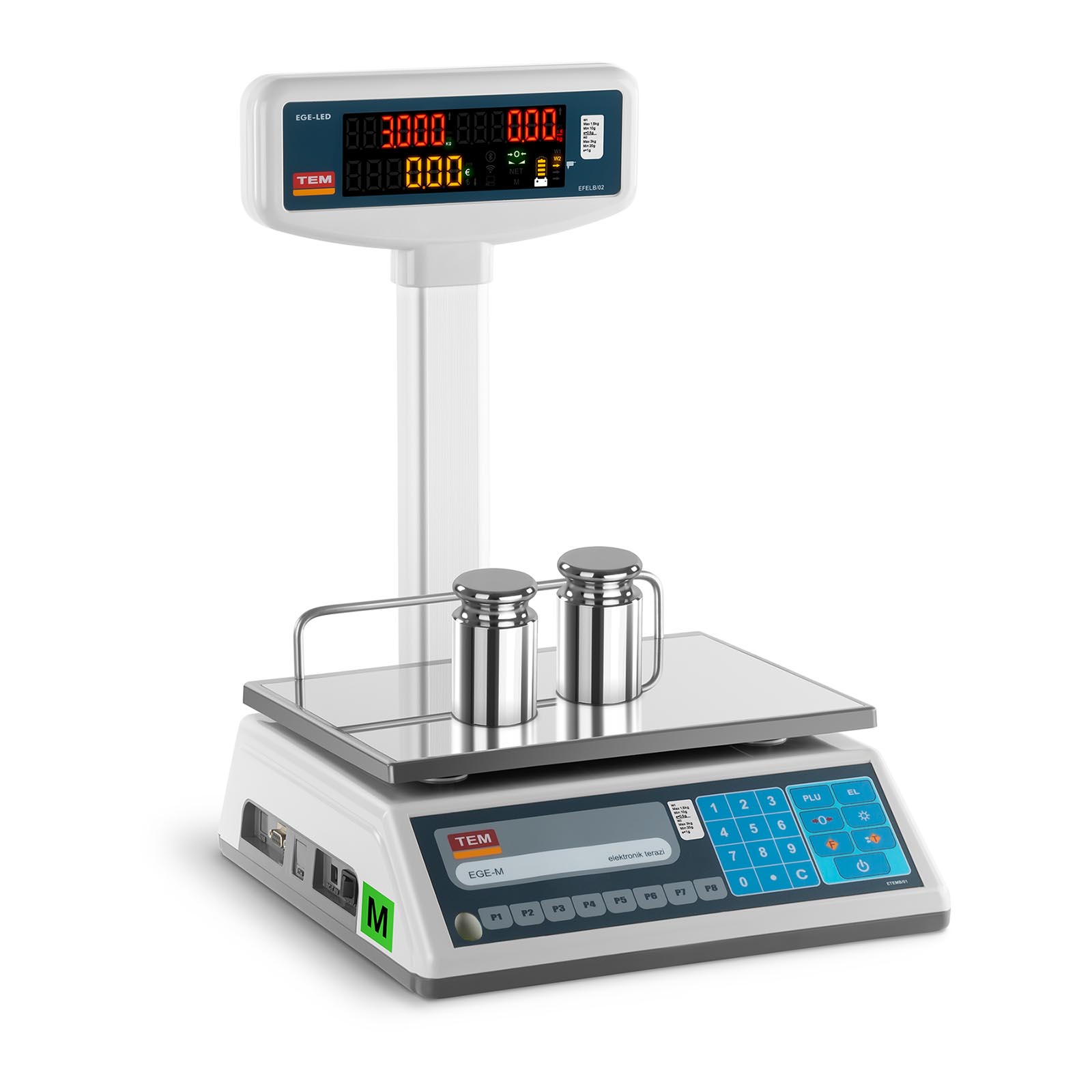 Sprzęt marki TEM wyposażony jest w wygodny i intuicyjny panel sterowniczy – klawiatura membranowa z czytelnymi symbolami, trójkolorowy wyświetlacz LED, dwukolorowe kontrolki sygnalizujące wybrane ustawienie i sygnały dźwiękowe informujące o uruchomieniu jednej z funkcji. Ponadto waga umożliwia również zapamiętywanie artykułów (do 250), szybki dostęp do ośmiu z nich oraz, za pomocą portu RS232, podłączenie wagi do kasy lub komputera.