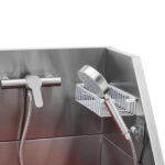 - – Komplet zawiera wszystkie przyłącza, baterię, słuchawkę prysznicową, stojak na szampon oraz wyjmowaną antypoślizgową kratkę podłogową,