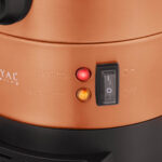 Warnik marki Royal Catering sprawdzi się do utrzymywania w cieple różnorodnych napojów. Urządzenie wykonane zostało ze stali nierdzewnej. Pojemność warnika wynosi 13,5 l. Duża moc 2500 W szybko podgrzewa napoje do temperatury regulowanej w zakresie 30-110°C. Dzięki funkcji utrzymywania ciepła zawartość warnika jest zawsze gotowa do spożycia. Dwie lampki kontrolne pokazują stan funkcji ogrzewania lub utrzymywania ciepła. Zewnętrzny wskaźnik poziomu płynu pozwala kontrolować jego uzupełnienie. Dwuścienna konstrukcja dzięki izolacji jest szczególnie energooszczędna. Kran pozwala na precyzyjne odmierzanie porcji płynów a ociekacz chroni powierzchnie przed ubrudzeniem. Termiczne uchwyty niwelują ryzyko poparzenia a mechanizm blokujący zamyka szczelnie pokrywę.