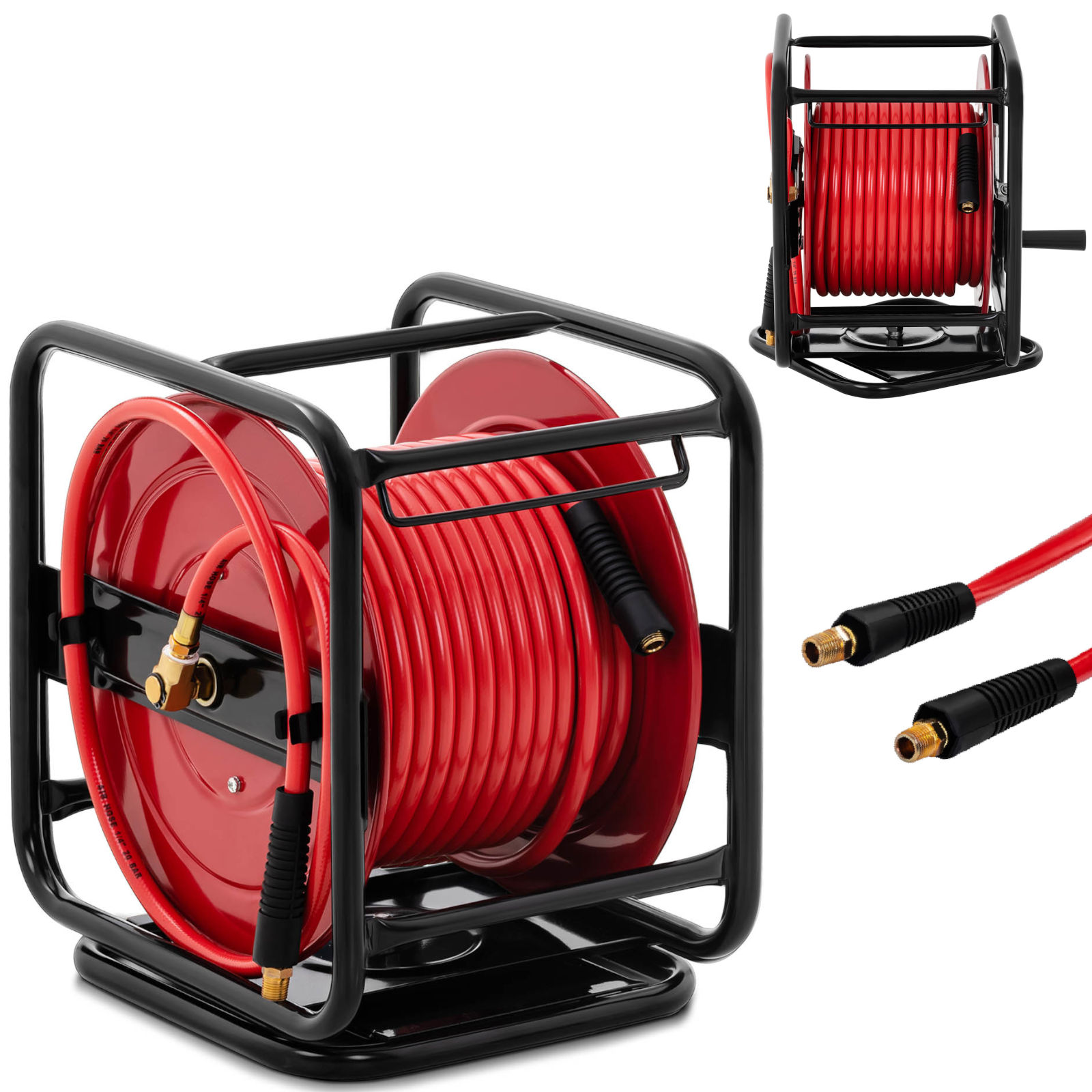 Przewód o długości 30 m umożliwia swobodę podczas pracy. Zwijacz pozwala szybko schować wąż po zakończeniu zadania i zachować porządek. Bęben obraca się o 360°. Obudowa została wykonana z żelaza odpornego na uszkodzenia. Wąż zrobiono z gumy przeznaczonej do pracy w zakresie temperatur -15 do 35°C. Dołączone akcesoria pozwalają na szybki montaż. Uchwyt można z łatwością przykręcić do podłogi, ściany czy do sufitu.