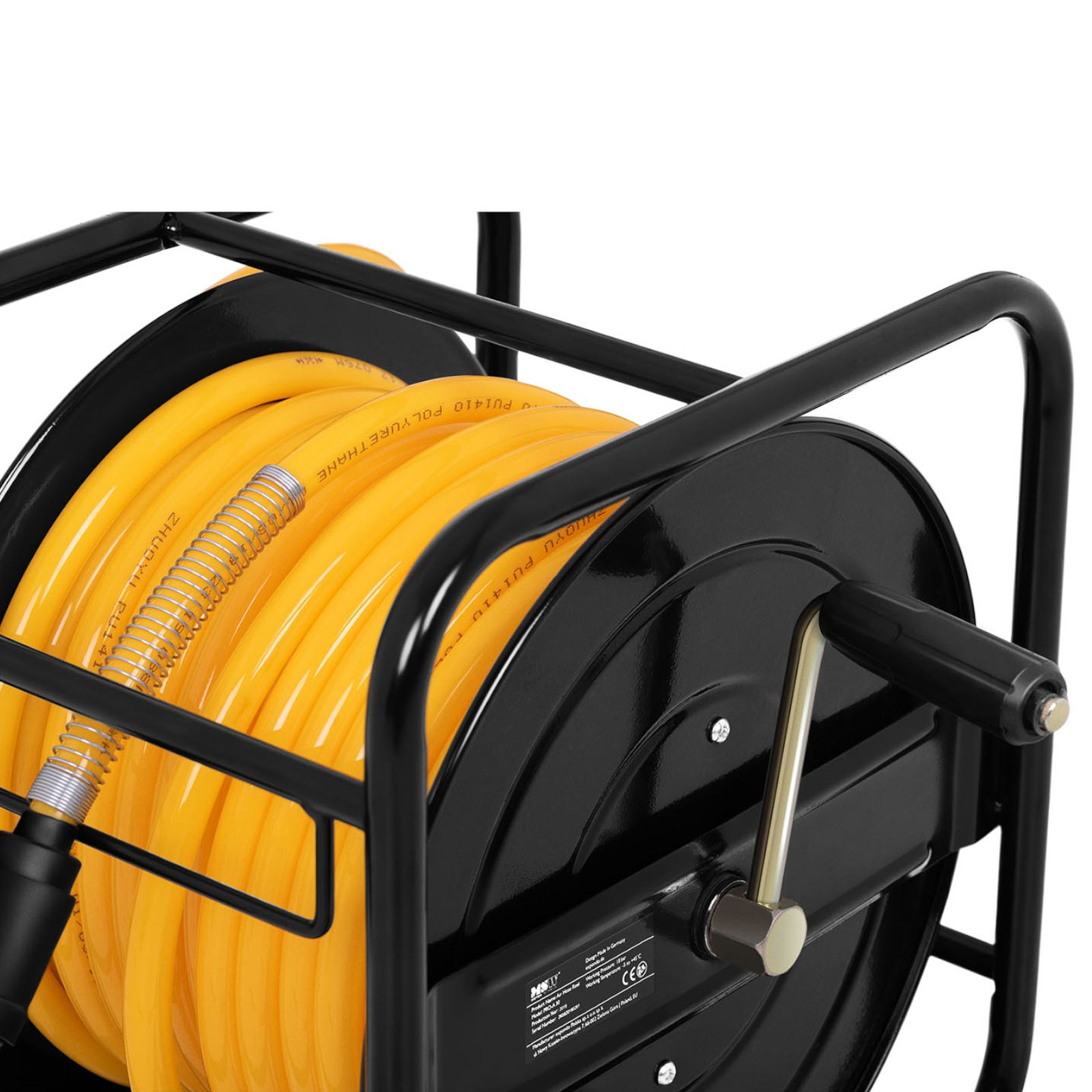 Przewód o długości 30 m umożliwia swobodę podczas pracy. Zwijacz pozwala szybko schować wąż po zakończeniu zadania i zachować porządek. Bęben obraca się o 360°. Obudowa została wykonana ze staliodpornej na uszkodzenia. Wąż zrobiono z gumy przeznaczonej do pracy w zakresie temperatur -5 do 45°C. Dołączone akcesoria pozwalają na szybki montaż. Uchwyt można z łatwością przykręcić do podłogi.