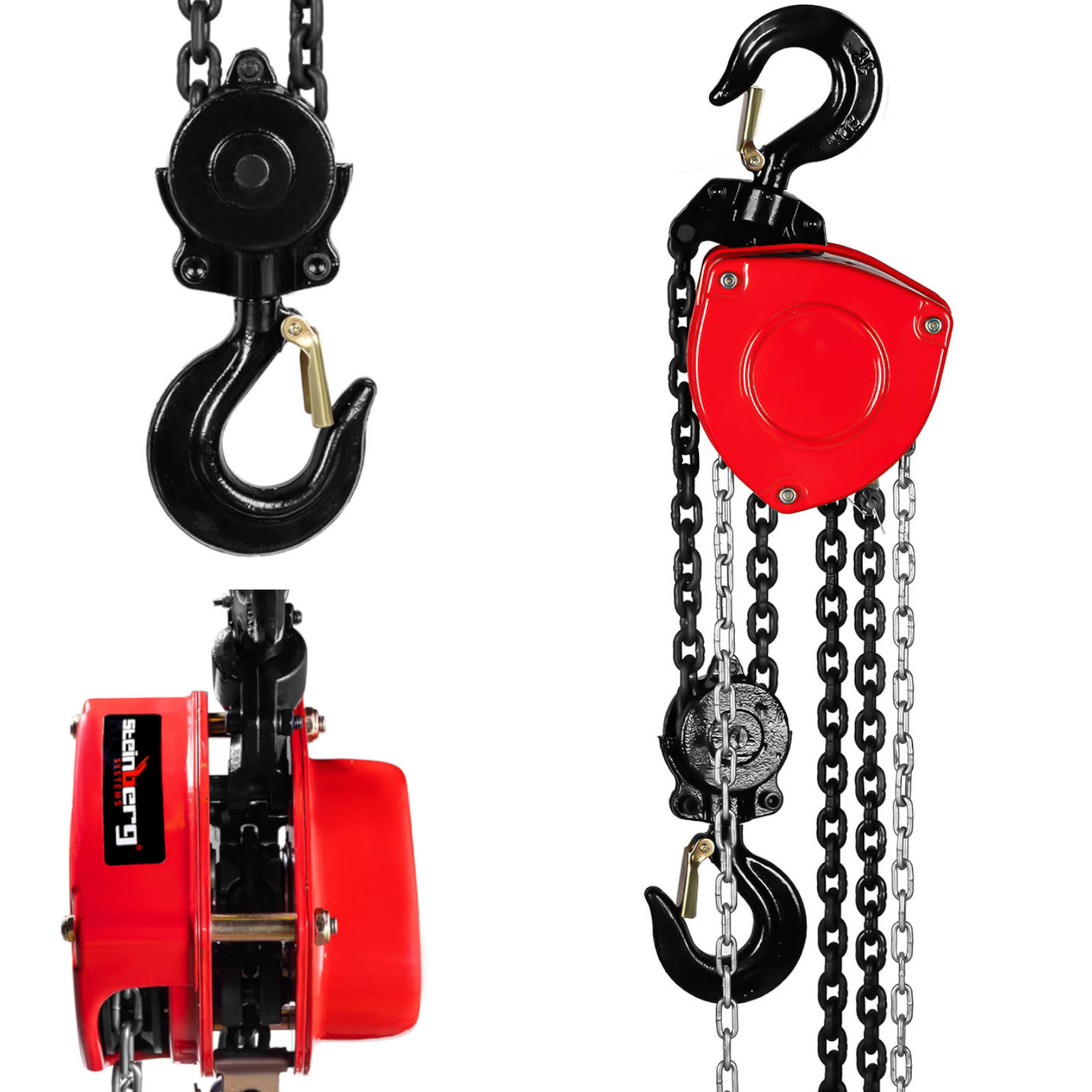 - – Materiał – Obudowa: stal niskowęglowa, łańcuch: stal hartowana czerniona