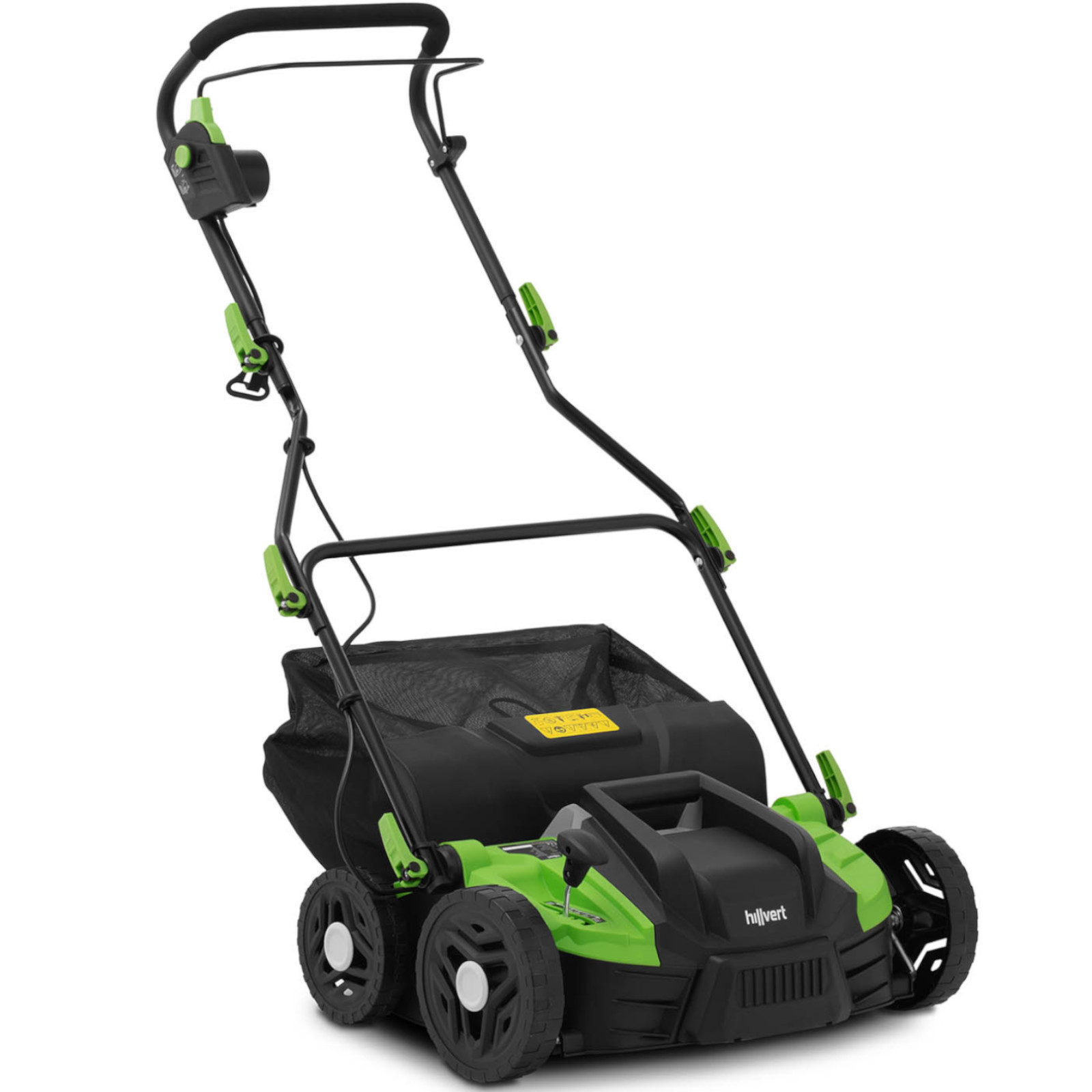 Wertykulator/aerator 2w1 marki Hillvert idealnie sprawdzi się przy pielęgnacji trawnika i gleby w Twoim ogródku. Wertykulator elektryczny posiada dwie szybko wymienialne rolki. Wałek wertykulujący z 10 wytrzymałymi podwójnymi nożami tnie glebę z regulowaną głębokością roboczą od -1.2 cm do 1 cm. Wałek wentylatora usuwa mech, chwasty i strzechę trawnikową dzięki 44 stalowym, sprężynowym pazurom. Dzięki szerokości roboczej 36 cm i czterem lekkobieżnym kołom jest idealnym partnerem do szybkiej pielęgnacji małych i średnich trawników. Efektywny silnik 1500 W generuje prędkość do 3600 obr./min, zapewniając szybkie i precyzyjne wyniki. Pojemny kosz zbierający o pojemności 45 l pozwala uniknąć ręcznego grabienia mchu i chwastów. Rękojeść pokryta pianką umożliwia wygodną obsługę i zmniejsza przenoszenie drgań na dłoń. Uchwyt do prowadzenia można ustawić pod kątem 12° lub 32°, co daje wysokość roboczą 87 cm lub 96,5 cm. Ponadto po zakończeniu pielęgnacji trawnika wertykulator można wygodnie schować, oszczędzając miejsce.