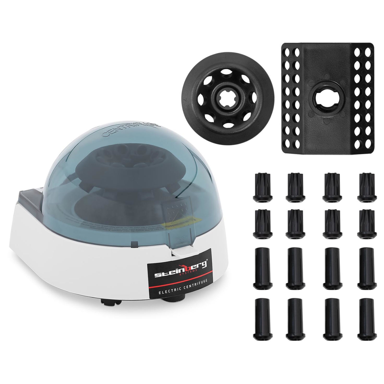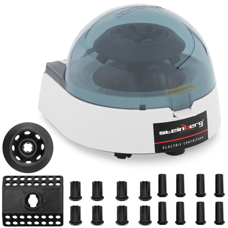 Wirówka laboratoryjna marki Steinberg Systems jest pomocnym urządzeniem naukowym i znajdzie zastosowanie w laboratoriach przemysłowych, ośrodkach badawczych oraz placówkach edukacyjnych. Napęd elektryczny ma moc 30 W. Za pomocą dwóch rotorów przystosujesz urządzenie do 8 probówek 1,5 / 2 ml oraz 4 pasków z 8 probówkami do PCR. Ponadto po zastosowaniu adapterów pierwszy wirnik może pomieścić probówki 0,2 i 0,5 mm. Za sprawą mikroprocesora prędkość można ustawić do 12000 obr./min. Z kolei generowane względne maksymalne przyspieszenie odśrodkowe wynosi 8550 g. Sprzęt posiada timer, który można ustawić w zakresie 1-99 minut. Wszystkie wartości są wyraźnie pokazane na wyświetlaczu LCD i można je ustawić za pomocą przejrzystego panelu sterowania.