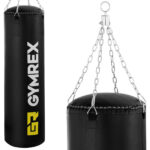 Worek treningowy marki Gymrex stanowi świetne akcesorium do ćwiczeń w domu oraz na siłowni. Nadaje się do boksu, MMA, muay thai, karate, kick-boxingu itp. Worek bokserski ma wysokość 120 cm i średnicę 40 cm. Materiał obicia jest odporny na rozdarcia czy pęknięcia. Szwy są bardzo mocne, a wyściółka dobrze nabita. Wewnątrz worka znajdują się tkaniny z recyklingu. W zestawie znajdują się łańcuchy i klamry do mocowania.