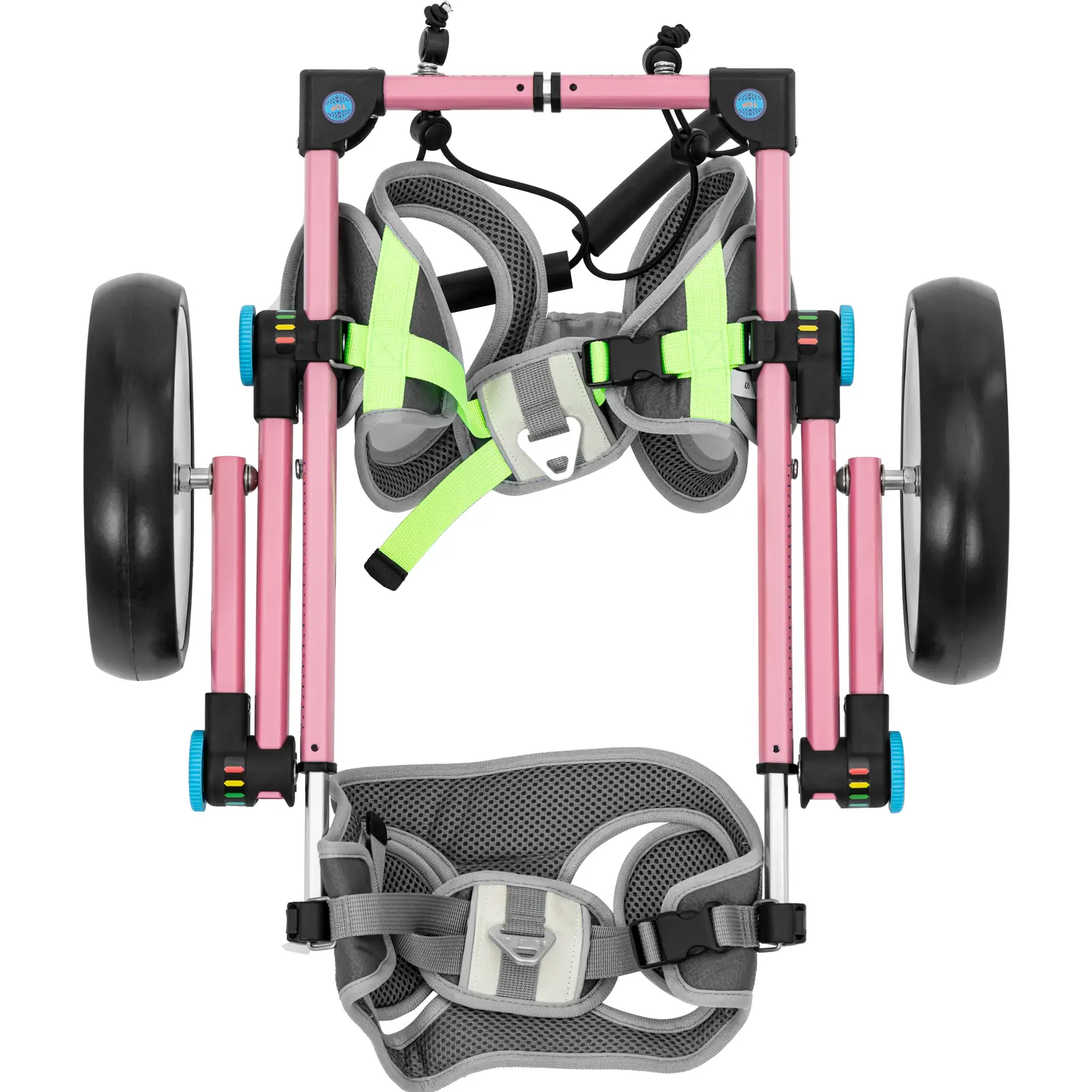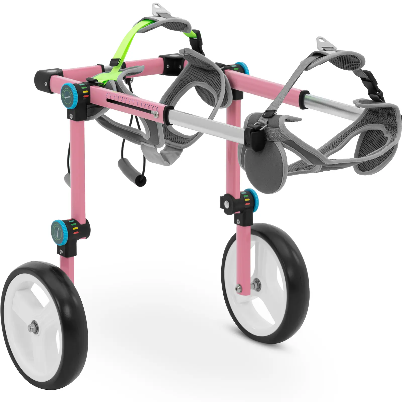 - – Dzięki zmiennej szerokości, długości i wysokości można dostosować wózek inwalidzki dla psa do różnych ras,