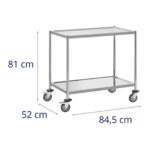 Wózek kelnerski marki Royal Catering sprawdzi się w stołówkach, dużych kuchniach, restauracjach, obiektach użyteczności publicznej lub w przestrzeniach prywatnych. Pozwala serwować duże ilości jedzenia i napojów za jednym lub transportować brudne naczynia. Dwie półki o wymiarach 82 x 50 cm i ładowności do 20 kg (razem 40 kg), są łatwo dostępne ze wszystkich czterech stron. Odległość między półkami wynosi 600 mm, dzięki czemu mieści patelnie i większe garnki. Półki imponują również specjalną konstrukcją przeciwwstrząsową. Wibracje i hałas są pochłaniane przez gumowe maty antywibracyjne pod spodem. Gwarantuje to wygodną, bezpieczną i cichą pracę bez głośnego brzęku naczyń. Dodatkowo krawędzie na całym obwodzie zabezpieczają transportowane produkty przed zsunięciem się. Wózek posiada cztery kółka, które można obracać o 360°. Dzięki temu sprzętem można łatwo manewrować nawet w ciasnych przestrzeniach. Nad kółkami znajdują się cztery odbojniki ochronne, które zapobiegają uszkodzeniom wózka, ścian lub mebli. Kółka wykonano z termoplastycznej gumy, co sprawia, że wózek można cicho pchać po dowolnej podłodze, nawet przy pełnym obciążeniu: czy to z płytek, parkietu czy drewnianych desek. Dla bezpieczeństwa, zwłaszcza podczas załadunku i rozładunku, zastosowano dwa hamulce postojowe. Blokują one wózek kelnerski przed niezamierzonym stoczeniem się. W razie potrzeby wysokość kółek można regulować o 5 mm. Wózek wykonano z higienicznej i odpornej na korozję stali nierdzewnej. Użyty materiał jest wyjątkowo wytrzymały, łatwy w pielęgnacji i trwały dzięki gładkiej powierzchni.