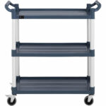 Wózek kelnerski marki Royal Catering sprawdzi się w hotelach, restauracjach, pensjonatach, ośrodkach wypoczynkowych, barach fast food i bistro, a także miejscach użyteczności publicznej (szkołach, szpitalach, bibliotekach) do przewożenia dań, napojów, sztućców, naczyń itp. Trzy plastikowe półki pozwalają ustawić obciążenie do 50 kg na każdej (łącznie 150 kg). Odległość między poziomami wynosi 32 cm. Parametry te pozwalają swobodnie rozmieścić naczynia i dania o różnych gabarytach oraz wadze (np. wazy z zupą). Cztery kółka o osi skrętu 360°, wykonane zostały z TPR – solidnego, wodoodpornego materiału o długiej żywotności. Dwa z nich wyposażono w hamulce. Użyte tworzywa są łatwe w czyszczeniu i zapewniają długa eksploatację wózka. Antypoślizgowe uchwyty pozwalają manewrować sprzętem nawet w niewielkich pomieszczeniach. Konstrukcja jest bardzo prosta w montażu; zakres dostawy obejmuje niezbędne akcesoria.