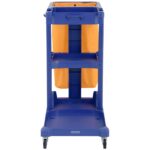 Wózek serwisowy z półkami uchwytem na mopa i torbą na pranie