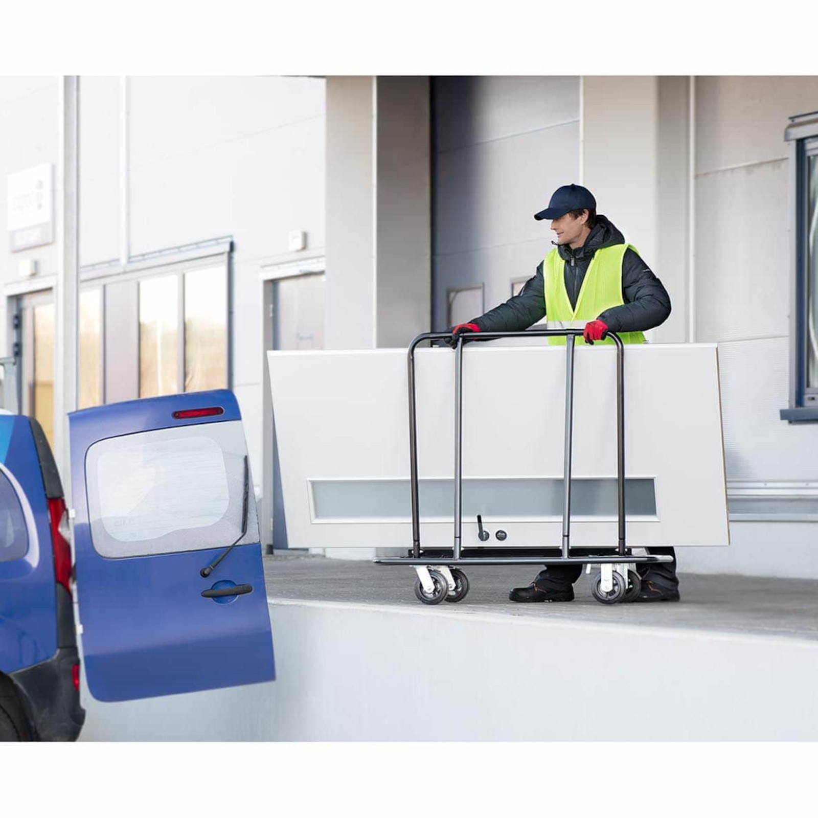 Wózek transportowy marki MSW jest idealny do magazynu, sklepu meblowego, hurtowni, lub na budowę. Doskonale nadaje się do transportu płyt kartonowo- gipsowych, desek, boazerii, mebli, pakunków itp. Charakteryzuje się otwartą prostą konstrukcją ułatwiającą użytkowanie. Nośność wózka wynosi 500 kg. Dzięki nachylonej platformie produkty nie ześlizgują się. Rama jest solidna i znosi intensywne użytkowanie. Duże gumowe koła o średnicy 15 cm (2 są skrętne) zapewniają mobilność sprzętu i ułatwiają manewrowanie w ciasnych miejscach.