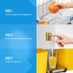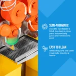 - – Półautomatyczna praca, gdy tylko wlot na owoce będzie pełny, wyciskarka wyciśnie sok z owoców oraz usunie resztki skórki,