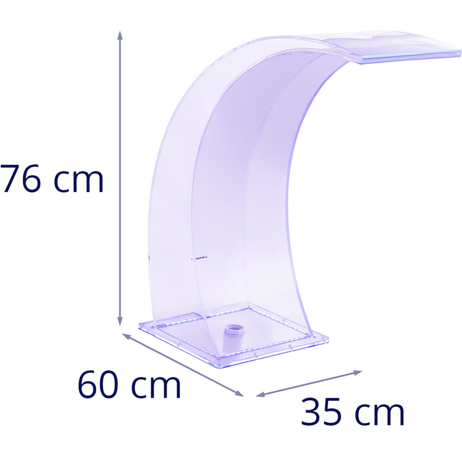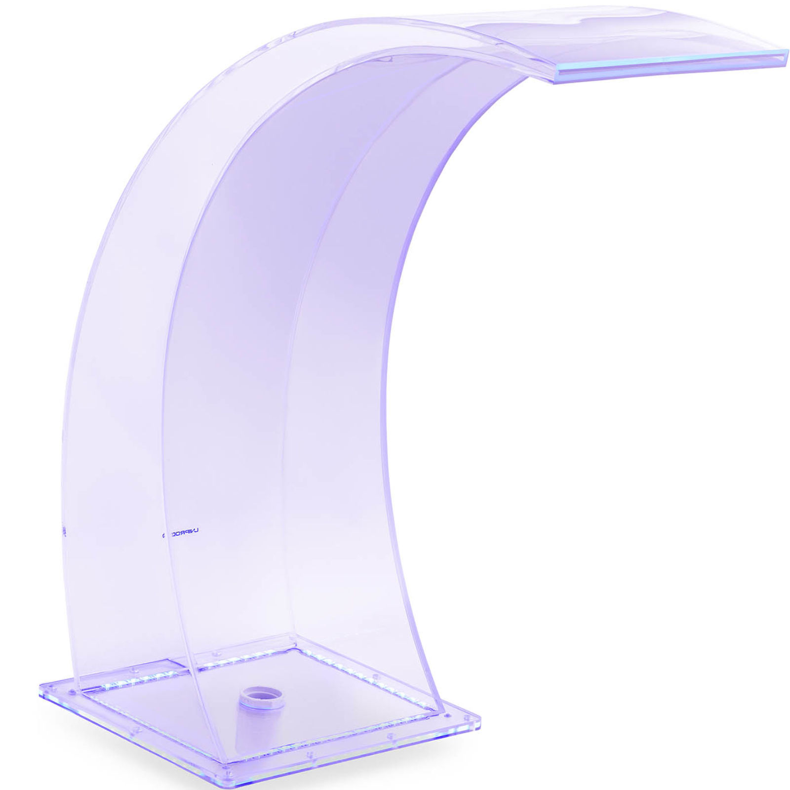 Wylewka wodospadowa firmy Uniprodo sprawdzi się na basenach, stawach, oczkach wodnych oraz w ogrodzie. Wylewka o szerokości 303 mm i długości 35 cm zapewnia równomierny przepływ wody. Posiada oświetlenie LED w kolorze niebieskim i białym. Urządzenie jest oszczędne, zużywa 24 W. Dzięki klasie ochrony IP44, oświetlenie jest chronione przed bryzgającą wodą ze wszystkich stron. Wylewka wodospadowa jest łatwa do złożenia i zamontowania, zarówno na ścianie, jak i na murze. Wykonana jest z mocnego akrylu odpornego na słoną i chlorowaną wodę. Materiał jest łatwy w konserwacji i zapewnia długą żywotność.